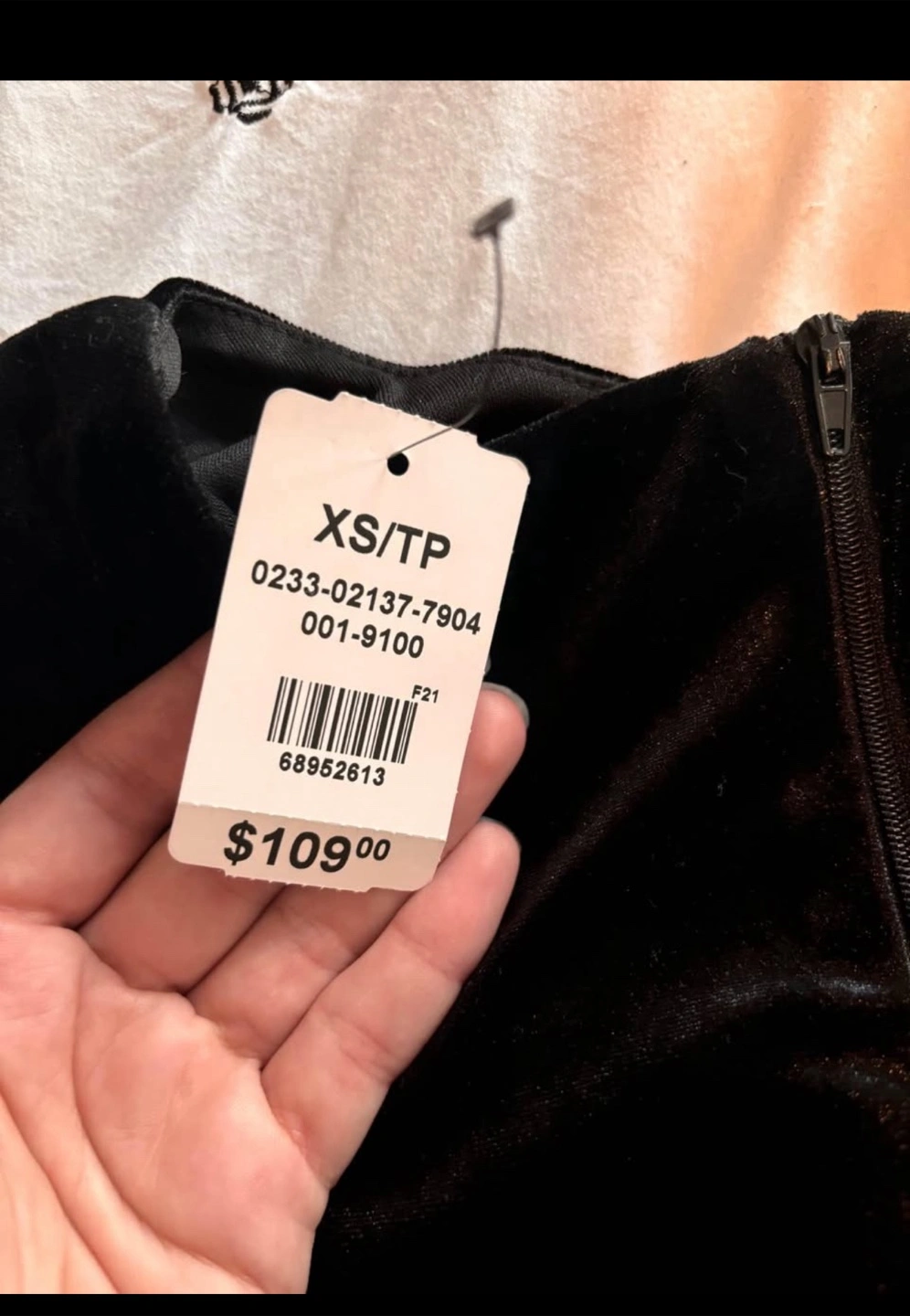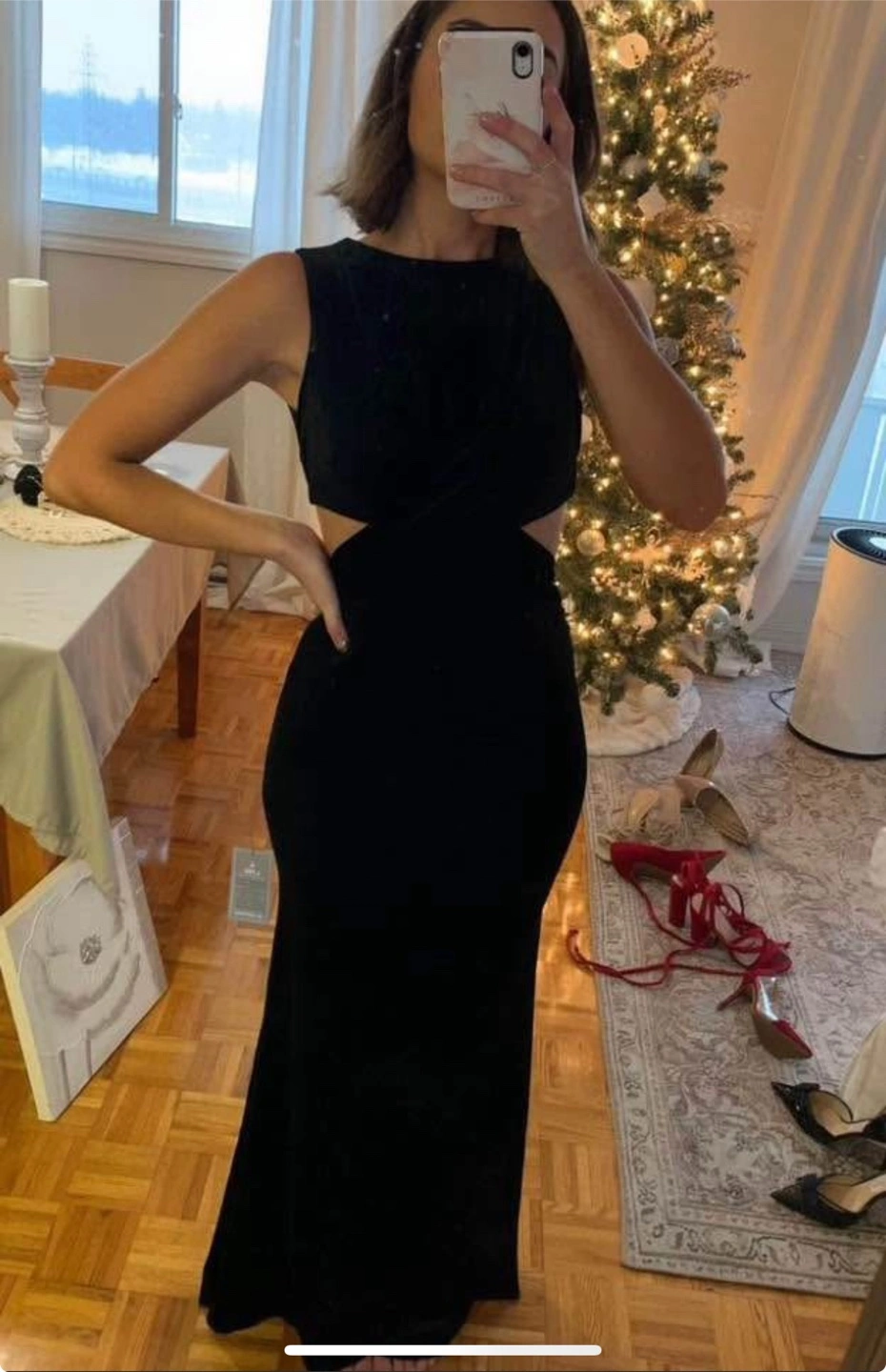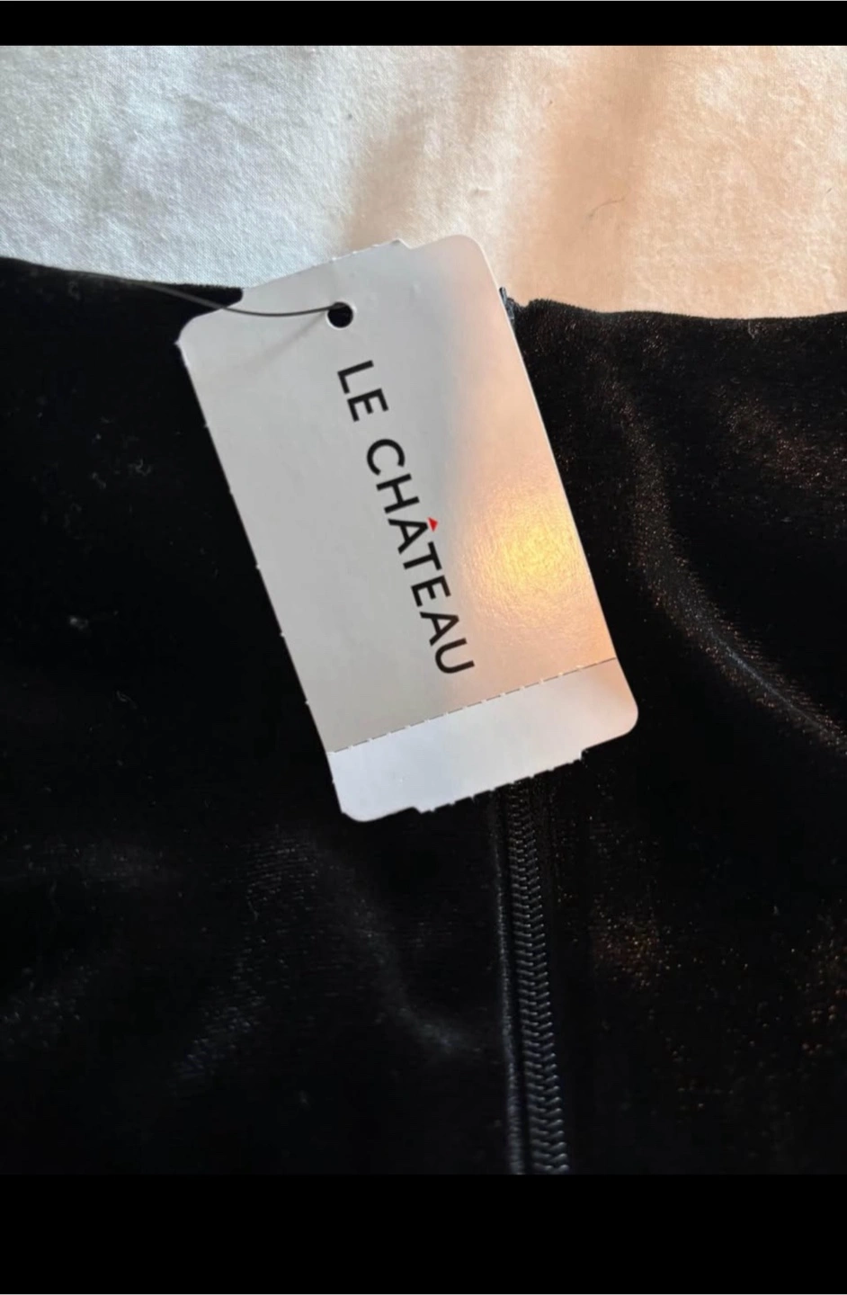 This is a brand new Le Chateau black velvet dress, size XS and fits Small size as well. It's never been worn and still has the tags on. Originally bought for $109 before tax. It's a beautiful elegant dress, perfect for a night out.