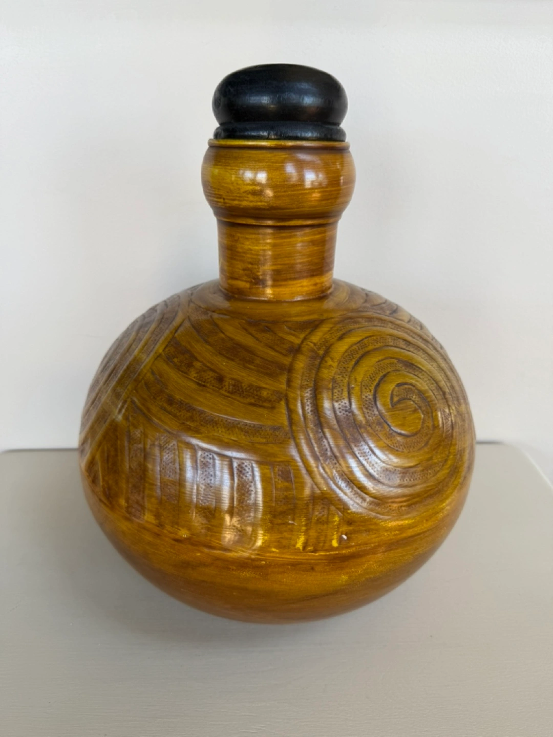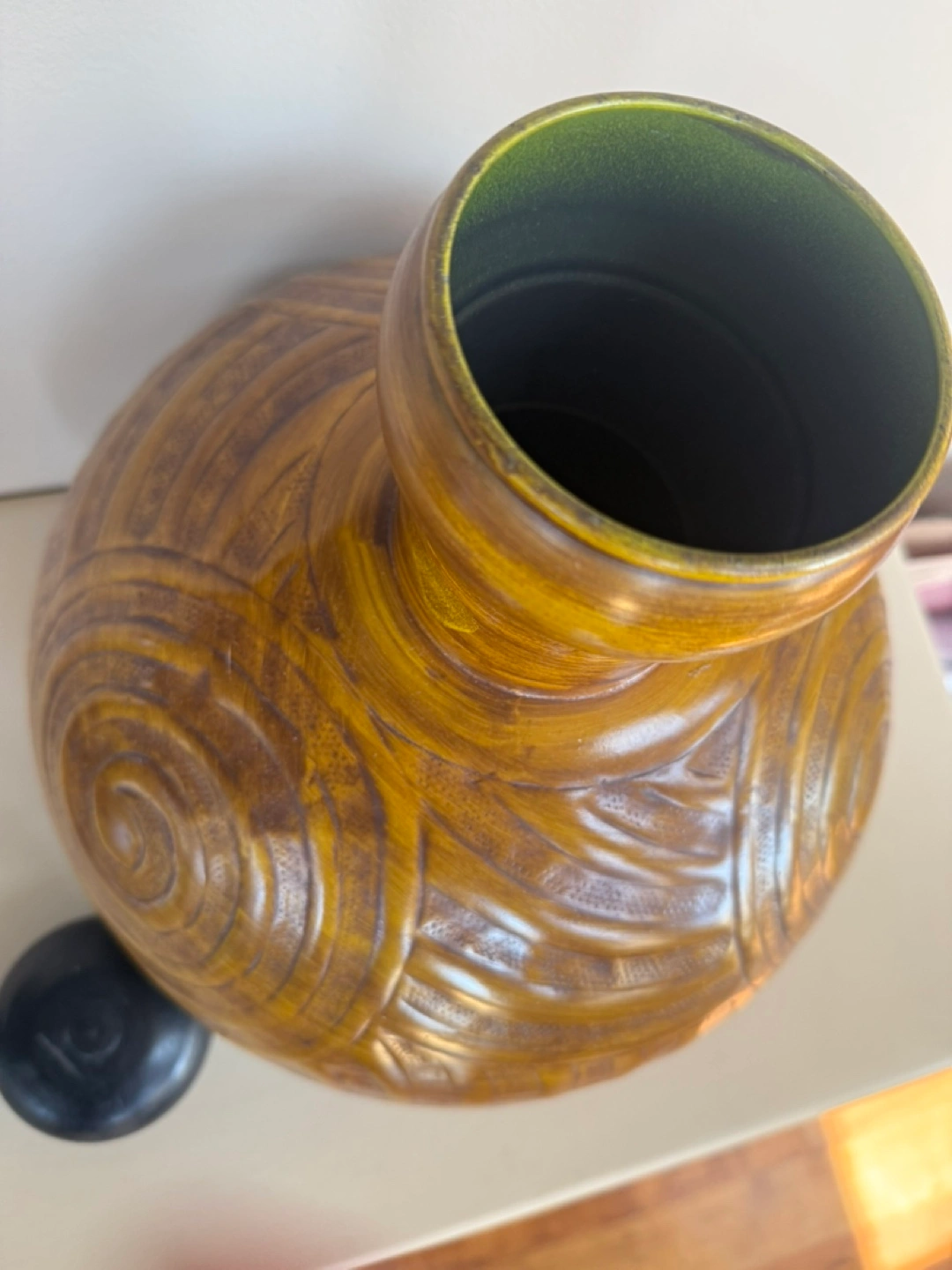 75Here's a unique decorative vase for sale. It has a lovely fall colour and a distinctive etched pattern. It measures approximately 14 inches in height making it a great statement piece for any room. Like new, no damage. Please see photos for approximate size & condition. Cash and pick up only in W. Hillhurst NW. Thanks for booking