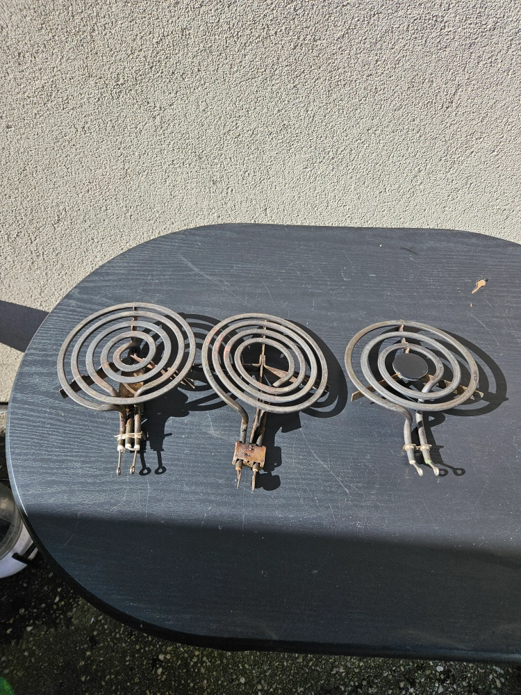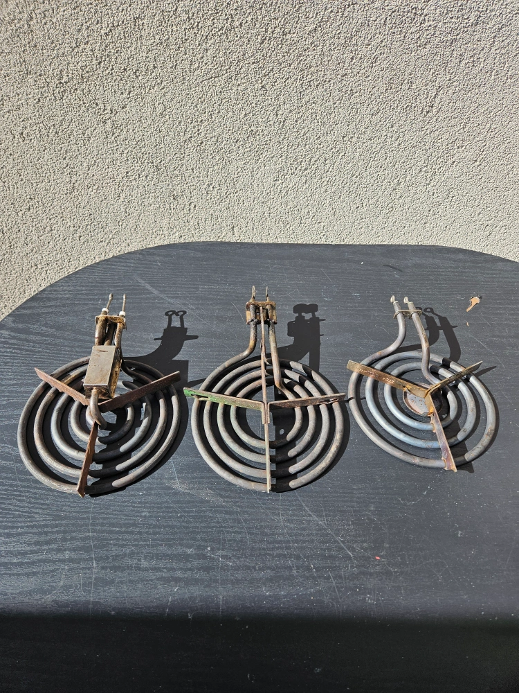 Selling a set of 3 used electric stove burner coils. They show some signs of wear, but are still functional. Great as spares or replacements! $5 dollars each.