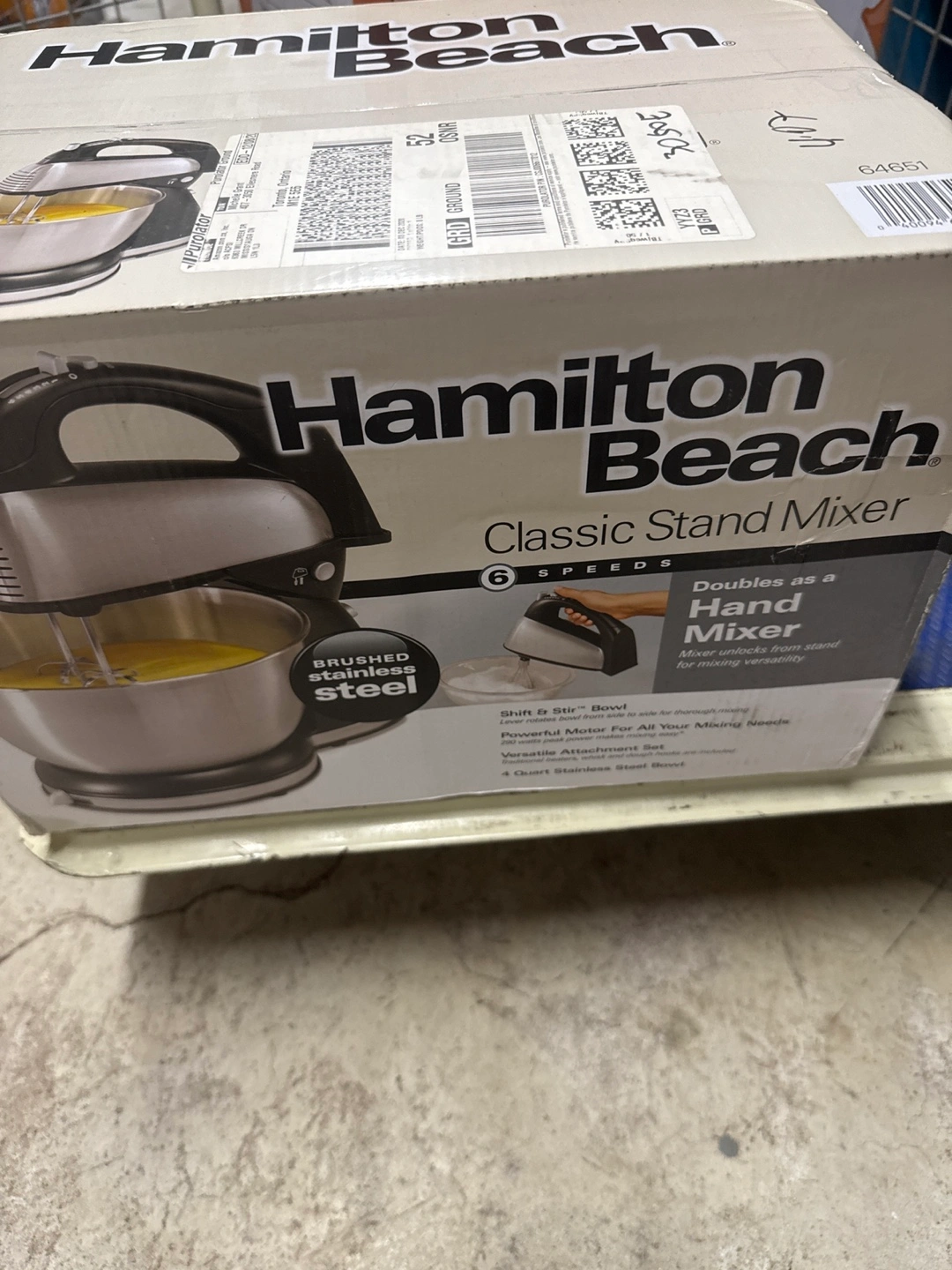 Selling a Hamilton Beach Classic Stand Mixer. It has 6 speeds and doubles as a hand mixer! The mixer unlocks from the stand for mixing versatility. It also features a shift & stir bowl and a powerful motor for all your mixing needs. Includes a versatile attachment set and a 4-quart stainless steel bowl