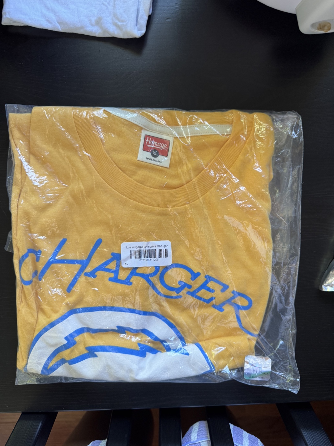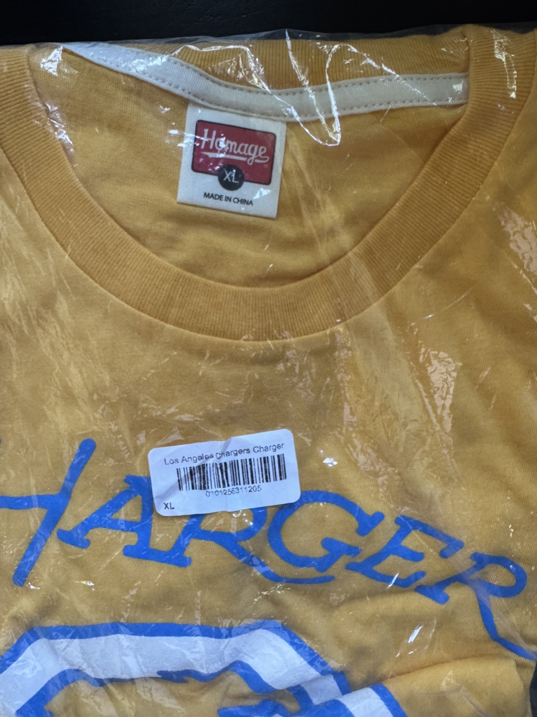 I have a brand new, in-package Homage Los Angeles Chargers T-Shirt for sale. It's a size XL and features the Chargers logo. Perfect for any fan!