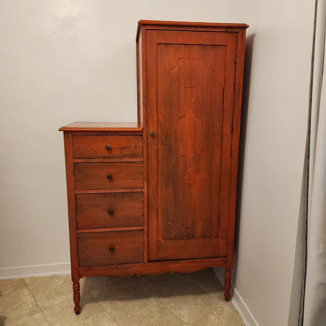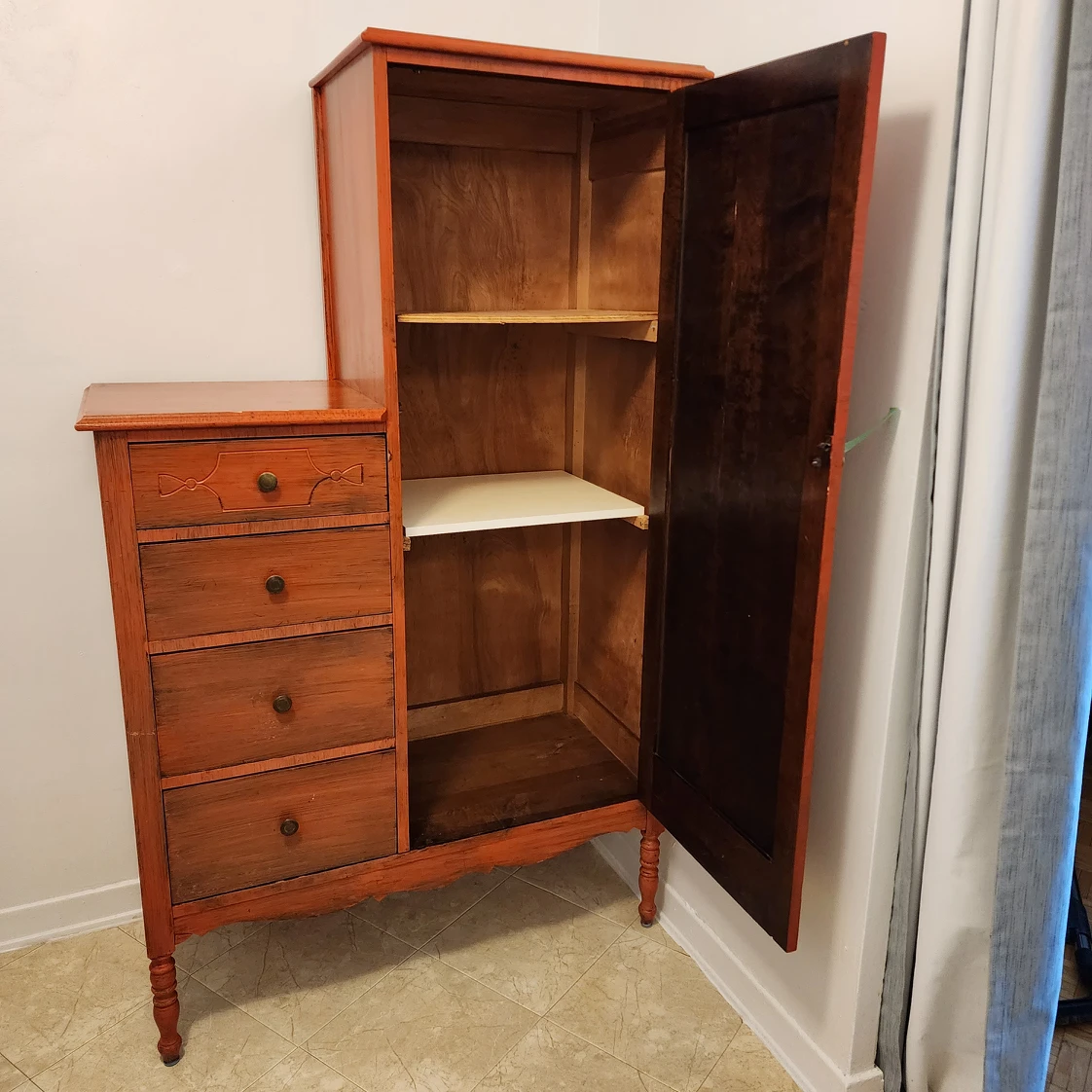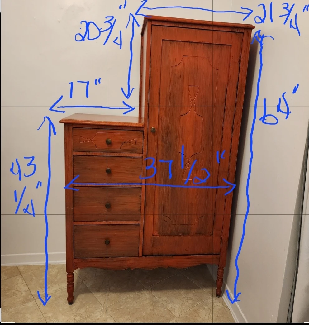 This is a great storage cabinet but you could always take the shelves out and put a tension bar in it and turn it back into a wardrobe. It has nice deep drawers, all different sizes. I planned on painting it, but I just don't have the space anymore. It is solid wood and very heavy. It will take 2 people to move this. Pick up is on Dixon Rd between Islington and Kipling. Afternoon or evening pick up only. ๐ญ Non-Smoking home ๐ถ๐ฆPet Friendly Home ๐ธ๐ณ All reasonable offers considered