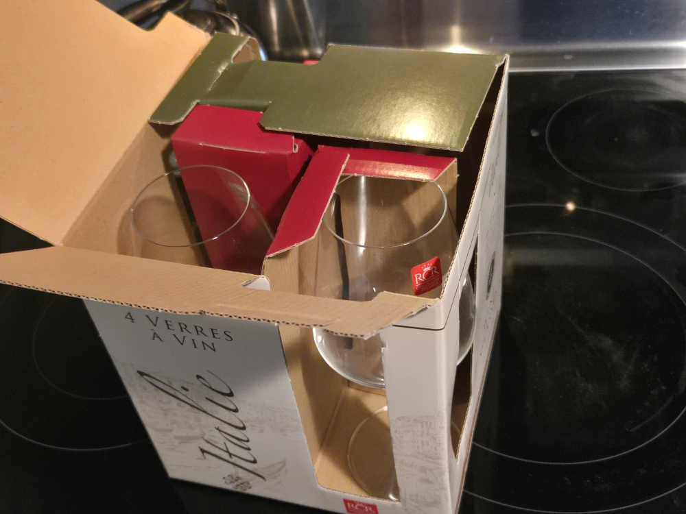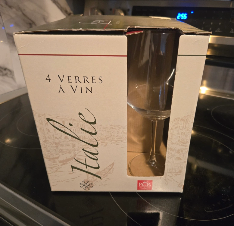 brand new set of RCR Italia wine glasses! This set includes 4 wine glasses in the original box. sfpf home pickup near Allan Gardens!
