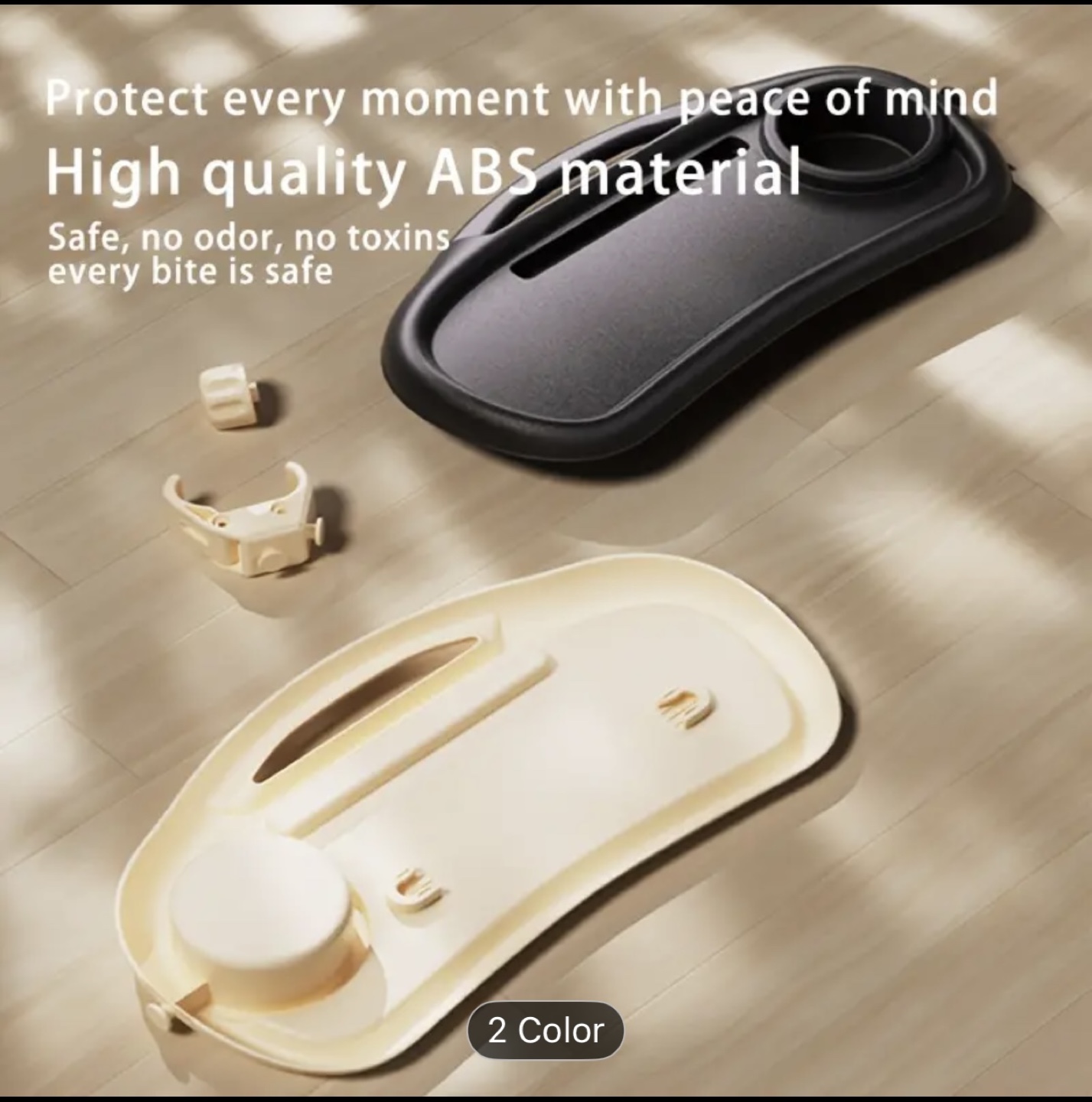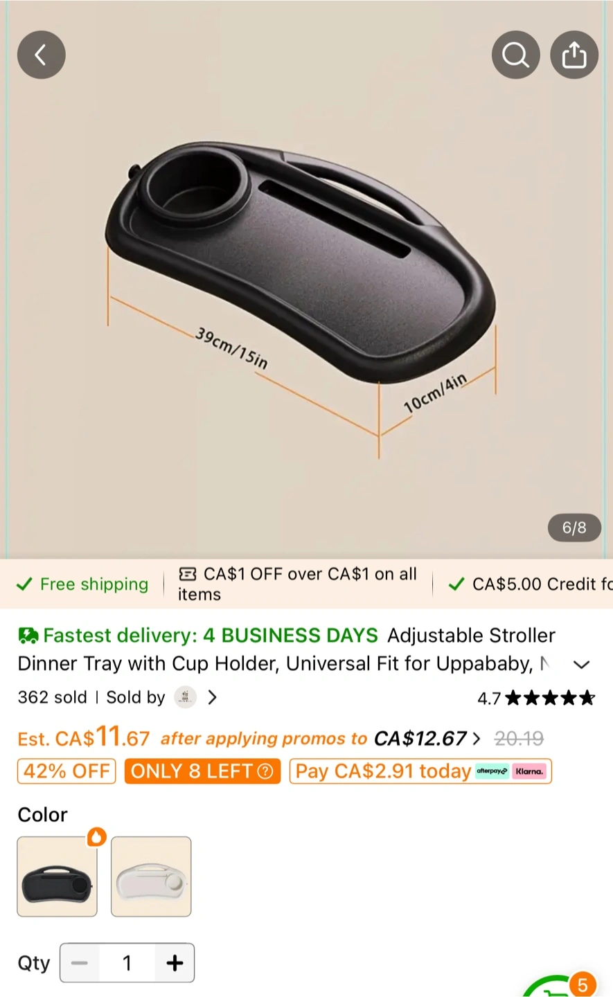 Brand new in box.This adjustable stroller dinner tray comes with a cup holder and is designed to fit all strollers. It's made from high-quality ABS material, ensuring it's safe with no odor or toxins. The clips can be easily installed and tightened, with a 360° rotation for various handlebar types.