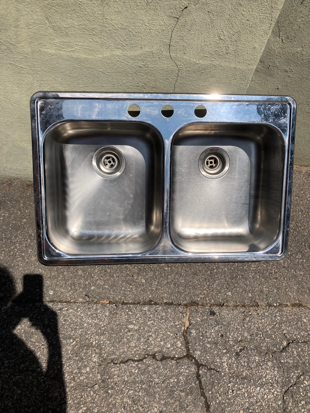 Selling a stainless steel double sink, perfect for any kitchen or utility space! It's in good condition and ready for a new home. 21 x 31