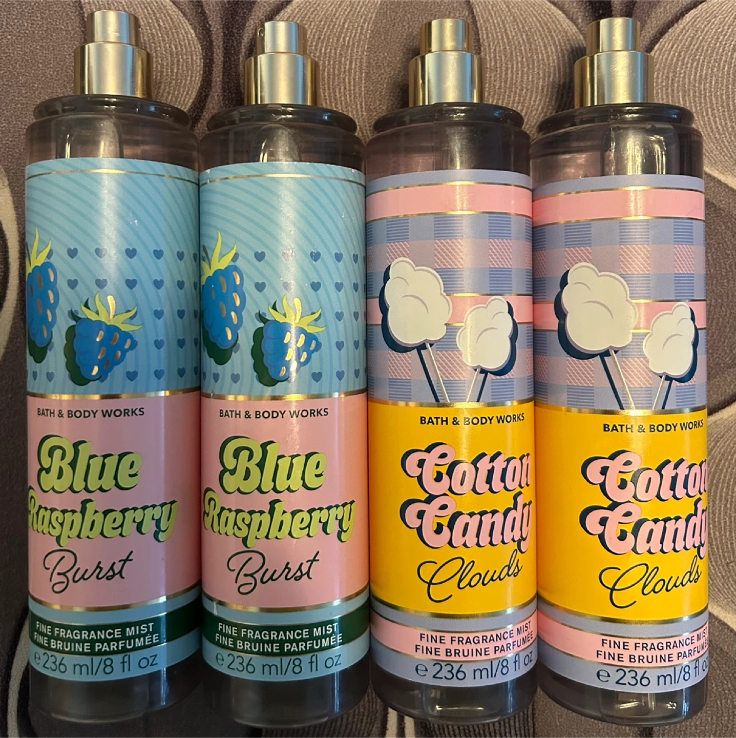 Selling two Bath & Body Works Fine Fragrance Mists: one in Blue Raspberry Burst and one in Cotton Candy Clouds