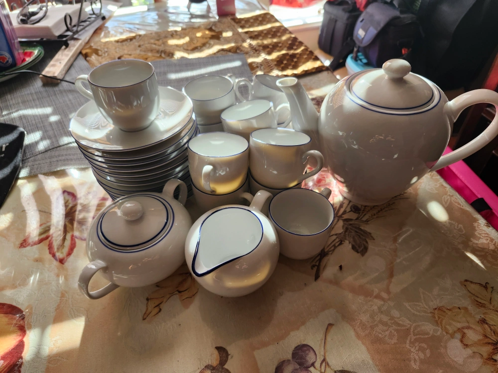 Never used Tea Pot, Cream and Sugar bowl 12 Espresso cups with small plate.