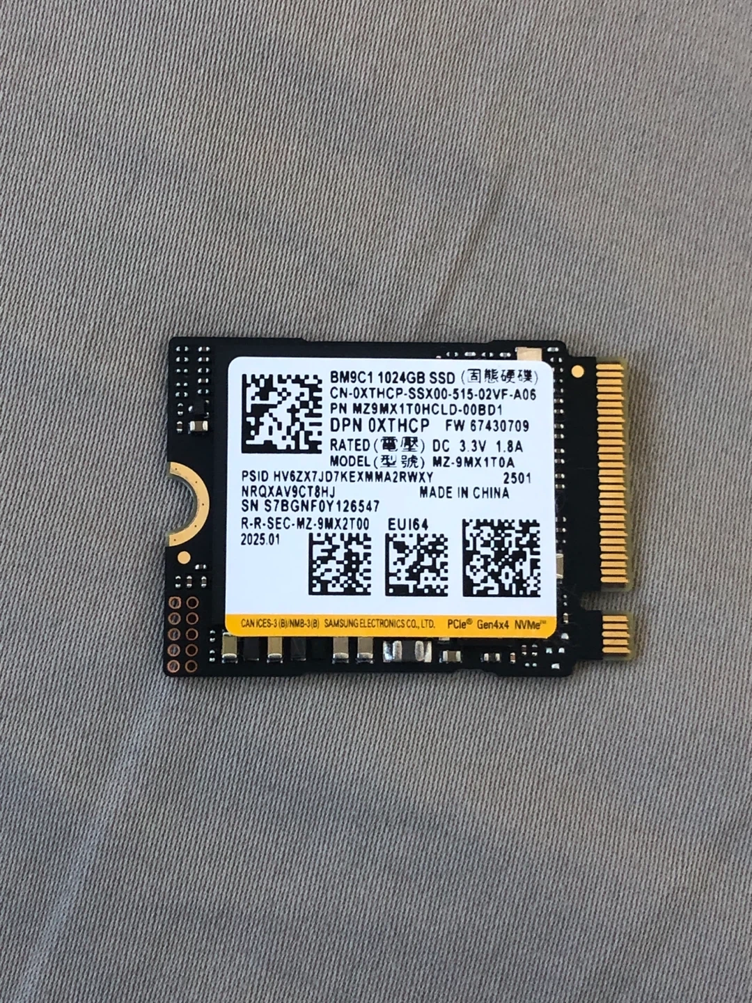 Selling a Samsung 1024GB SSD.