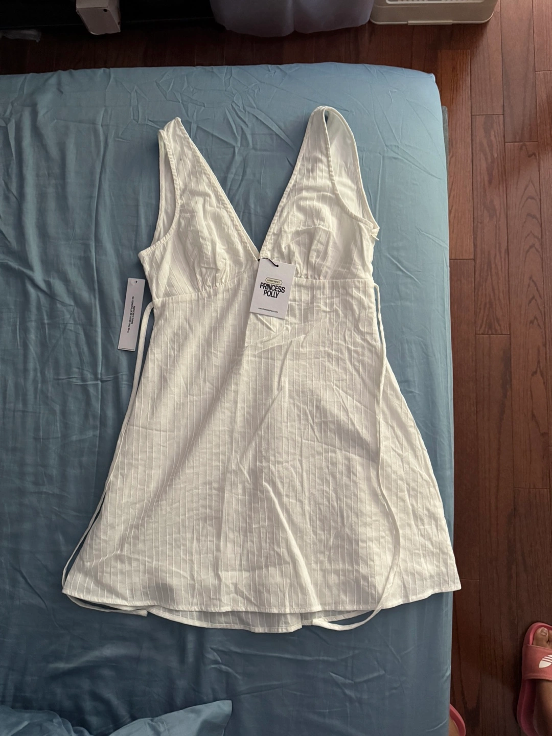 Selling a brand new Princess Polly Adder Mini Dress in white! This dress is a size US 6 / AU 10. It's made with materials that have a lower environmental impact, and the tag is recycled and recyclable. Originally for $65 USD plus tax.