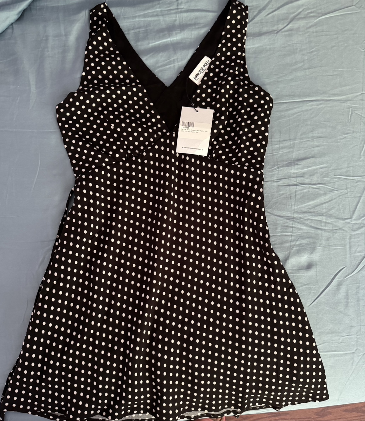 Selling a brand new cute Princess Polly Nellie mini dress in a black polka dot pattern. It's a size US 4. This dress is new with tags!