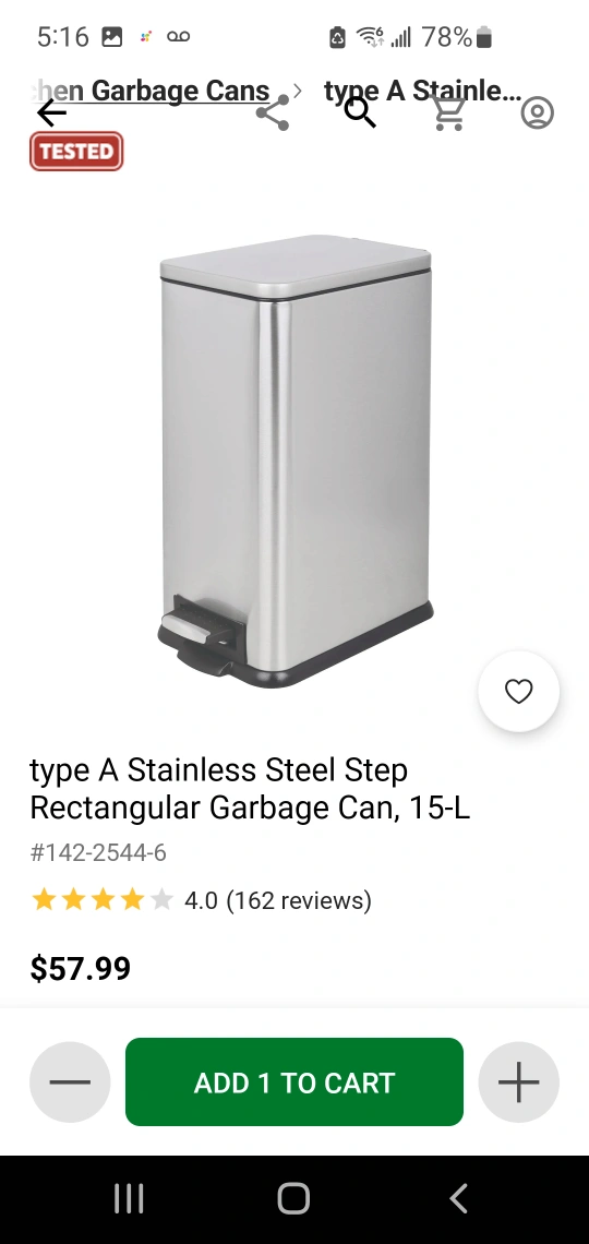 Selling a stainless steel step rectangular 15L soft closing garbage can. Perfect for any room! The original price was $57.99 Extremely clean only thing is missing the pull out bucket handle as you can see in the pictures.