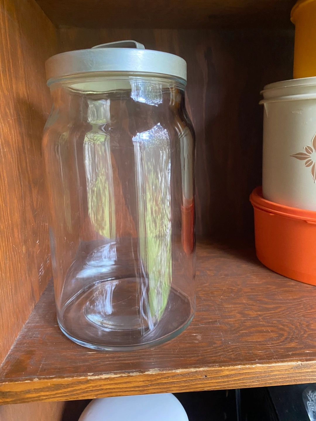 Selling a lovely vintage clear glass jar with a lid. It's in great shape and perfect for storing pantry items or displaying decorative objects. The jar is made of clear glass, so you can easily see what's inside. The lid has a good rubber seal on it, would look great in any kitchen or home! Moving Sale Pick up only