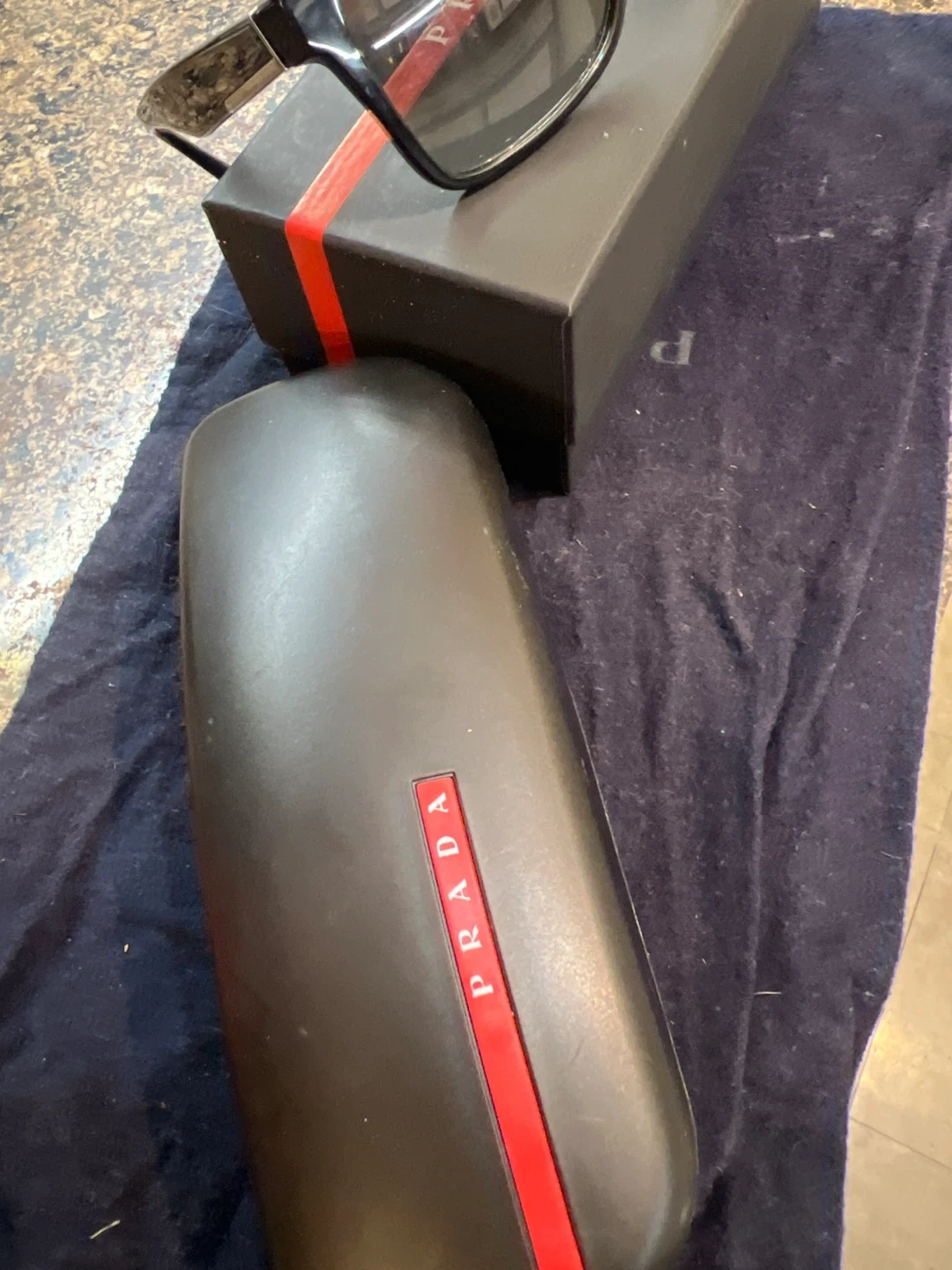 1000+Selling a pair of Prada SPR 19S sunglasses in black! They are in great condition and come with the original box and Prada cloth. And plastic case. The model number is SPR 19S 59017 1AB-OA7 145 2N. Made in Italy