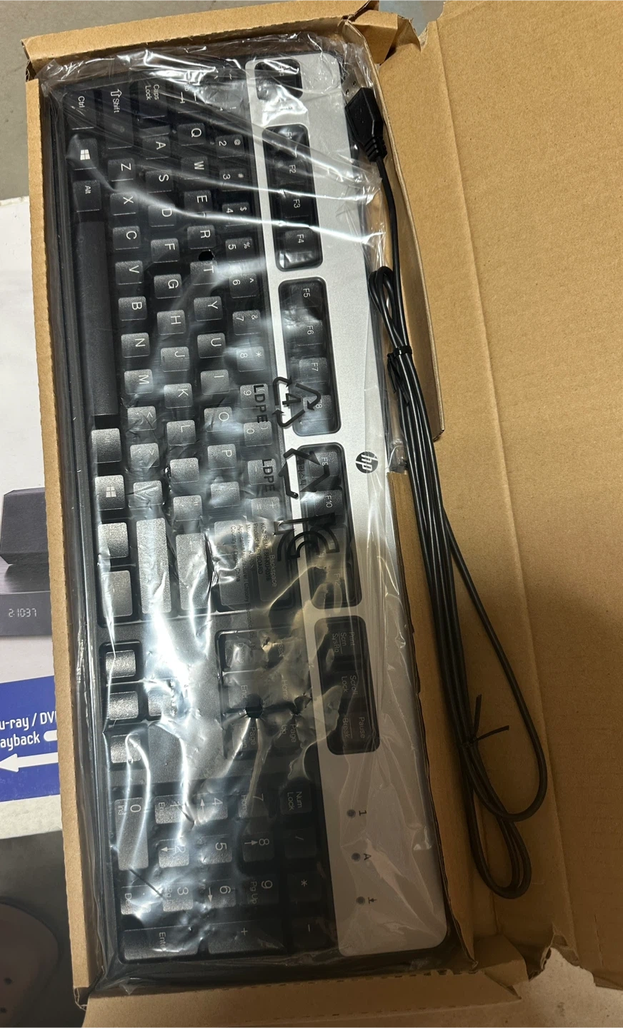 Selling a brand new HP wired keyboard! It comes in its original box and includes all the components you'd expect. Perfect for a desktop setup or as a spare keyboard **Free with purchase**