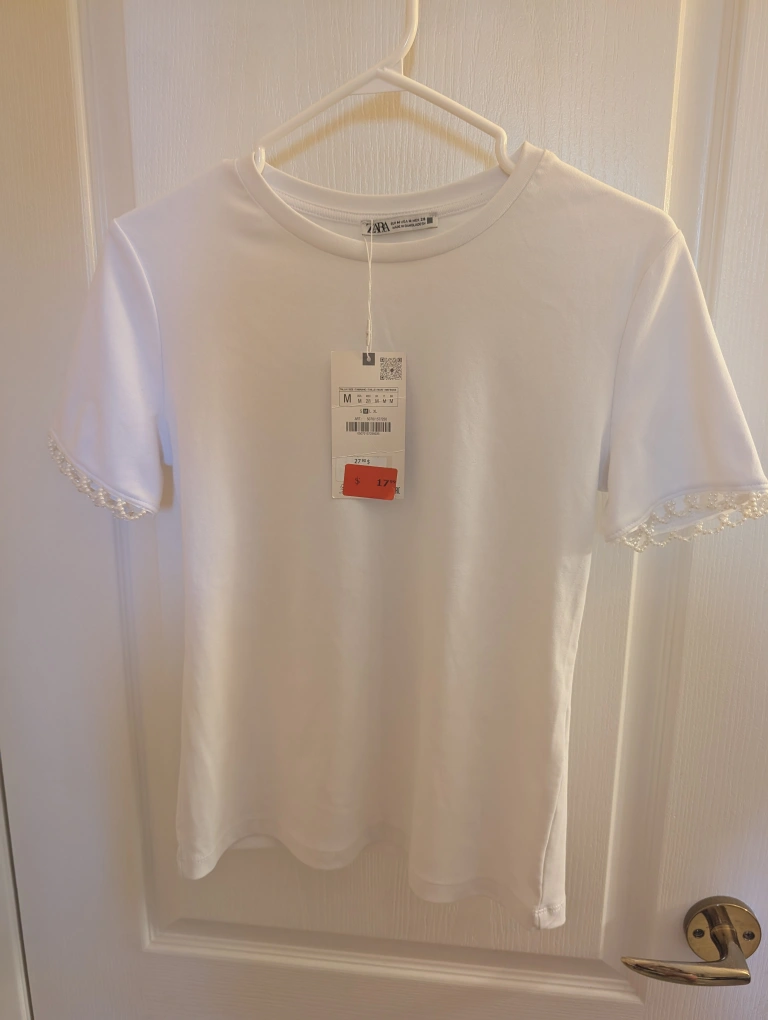 Buy & SellZara brand new white bead t-shirtZara brand new white bead t-shirt$15Zara brand new white beaded t-shirt size medium ConditionNewSizemedium WHERE TO MEETEdmonds Station Bus LoopView MapSELLERChristieStride Hill342 reviews0 chats·0 favorites·21 views