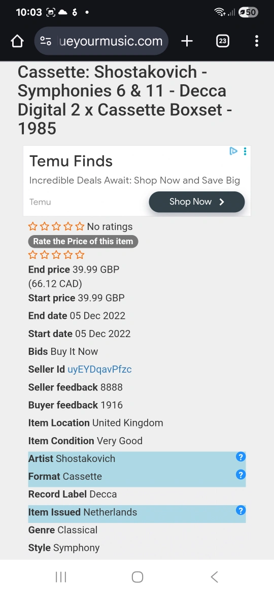 FREE Shostakovich Symphonies 6 & 11 Cassette Tapes Set
