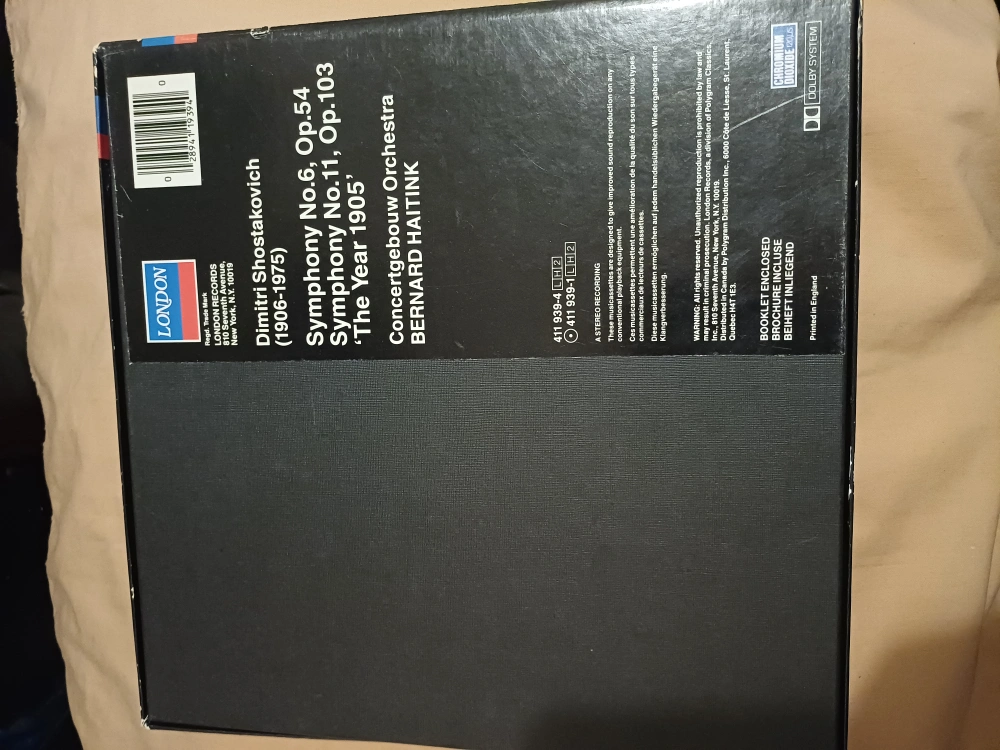 Shostakovich Symphonies 6 & 11 cassette tapes set featuring the Concertgebouw Orchestra conducted by Bernard Haitink. This set comes in its original box and includes a booklet. A great addition for any classical music enthusiast!