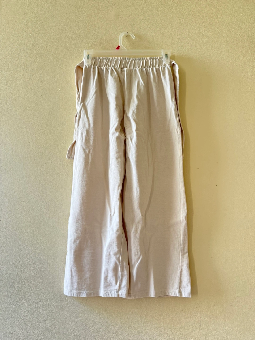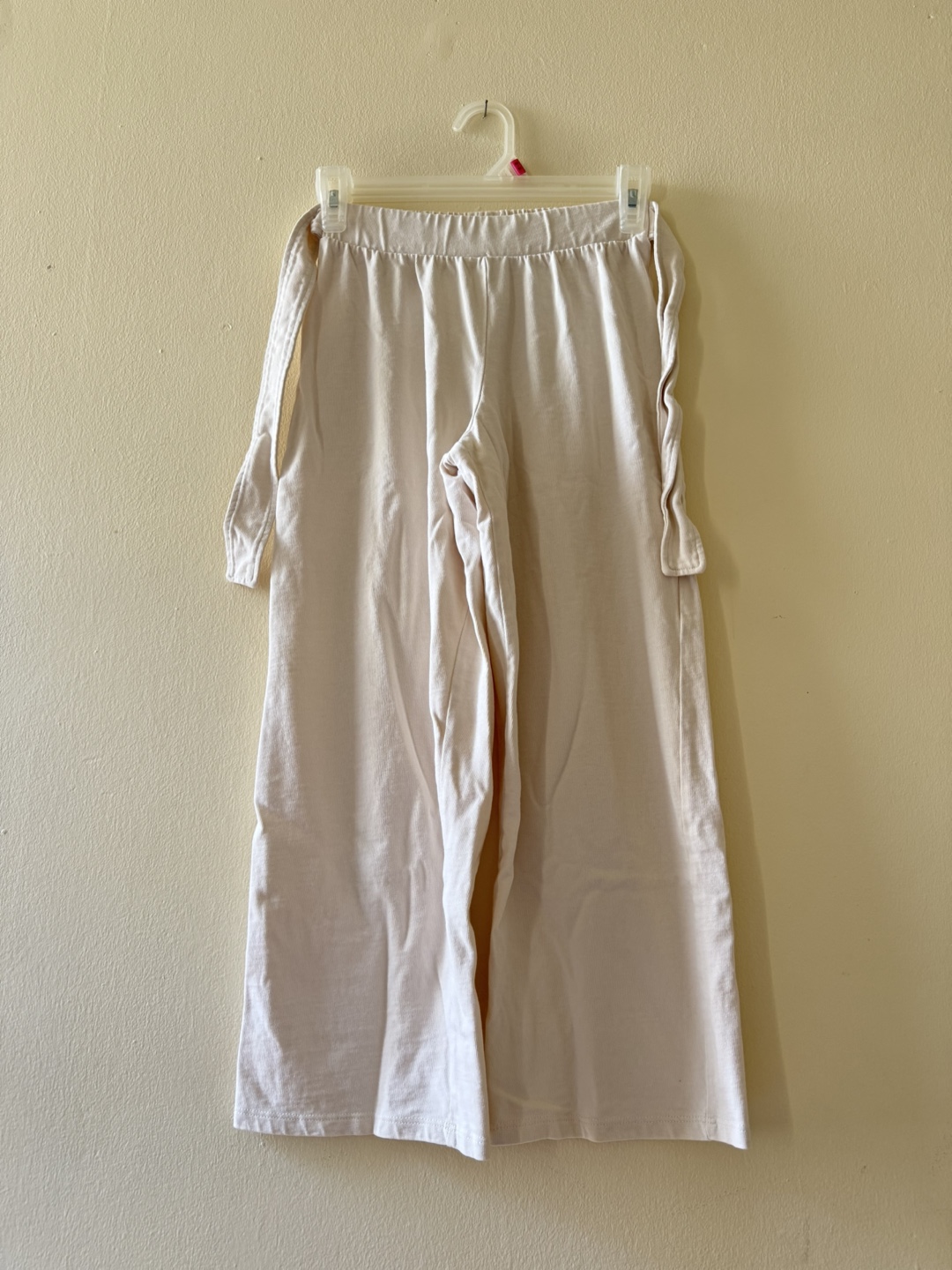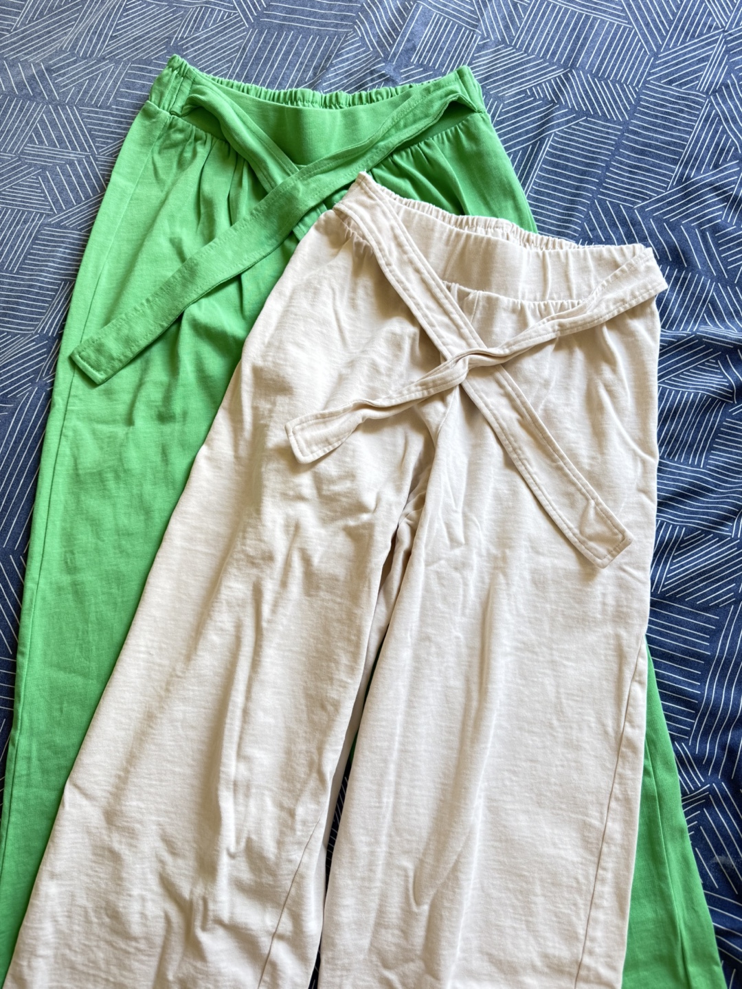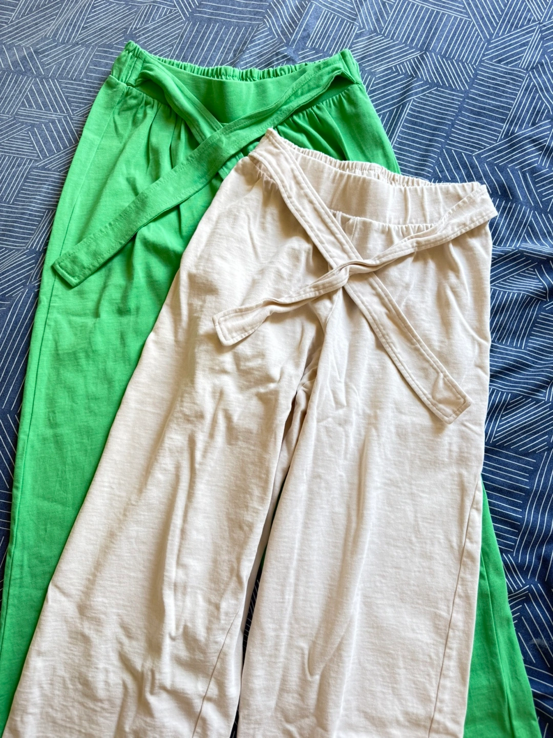 a pair of Zara kids' pants in a bright green and white colour These are a size 11-12 (CM 152) and feature a stylish belted design. They're made in Bangladesh and New
