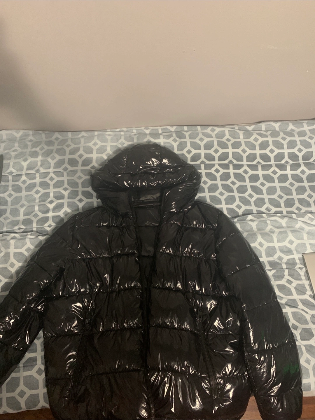 Selling a black puffer jacket. It's in good condition and ready to during those chilly days! It has a hood to protect you from the elements. It's a stylish and functional piece for your wardrobe