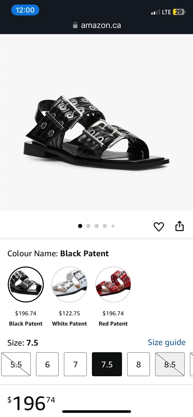 These Steve Madden sandals are super stylish. They feature a black patent leather finish with eyelet and buckle detailing. Perfect for adding a bit of edge to any outfit