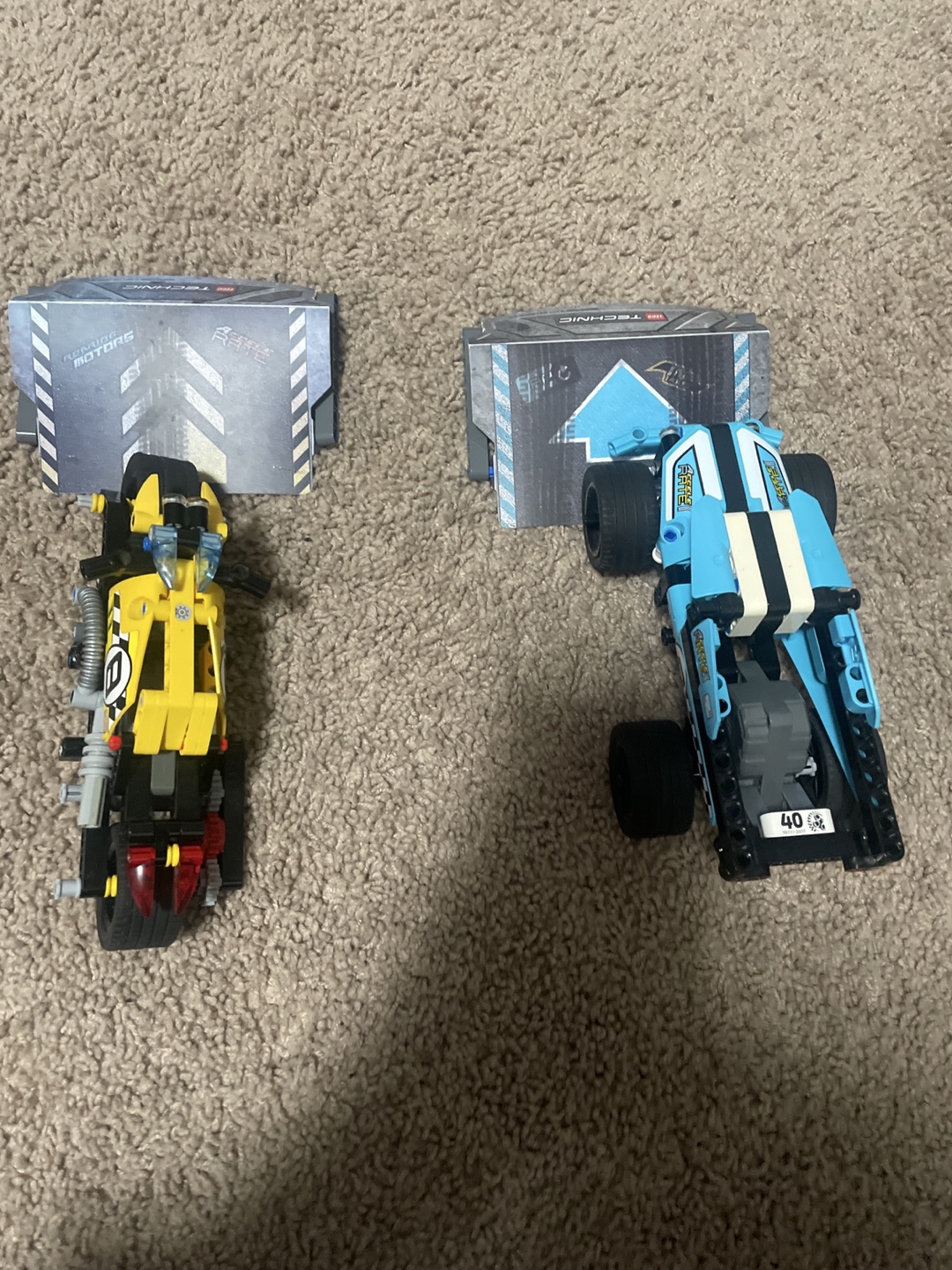 Selling two LEGO Technic sets: a motorcycle and a race car! Both are combinable into one vehicle but there are no instructions or box included