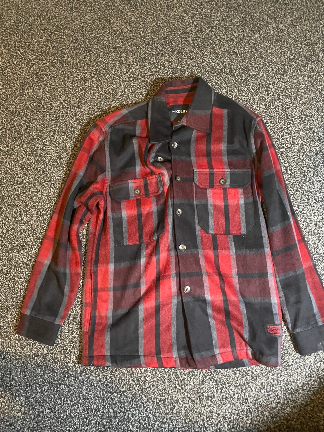 Cozy Kolby flannel shirt in a classic plaid pattern. This shirt is a size men’s smalland features a stylish red, grey, and black colour scheme. Perfect for layering or wearing on its own! Used about 1-2 times only. Bought it for about 25-30 dollars
