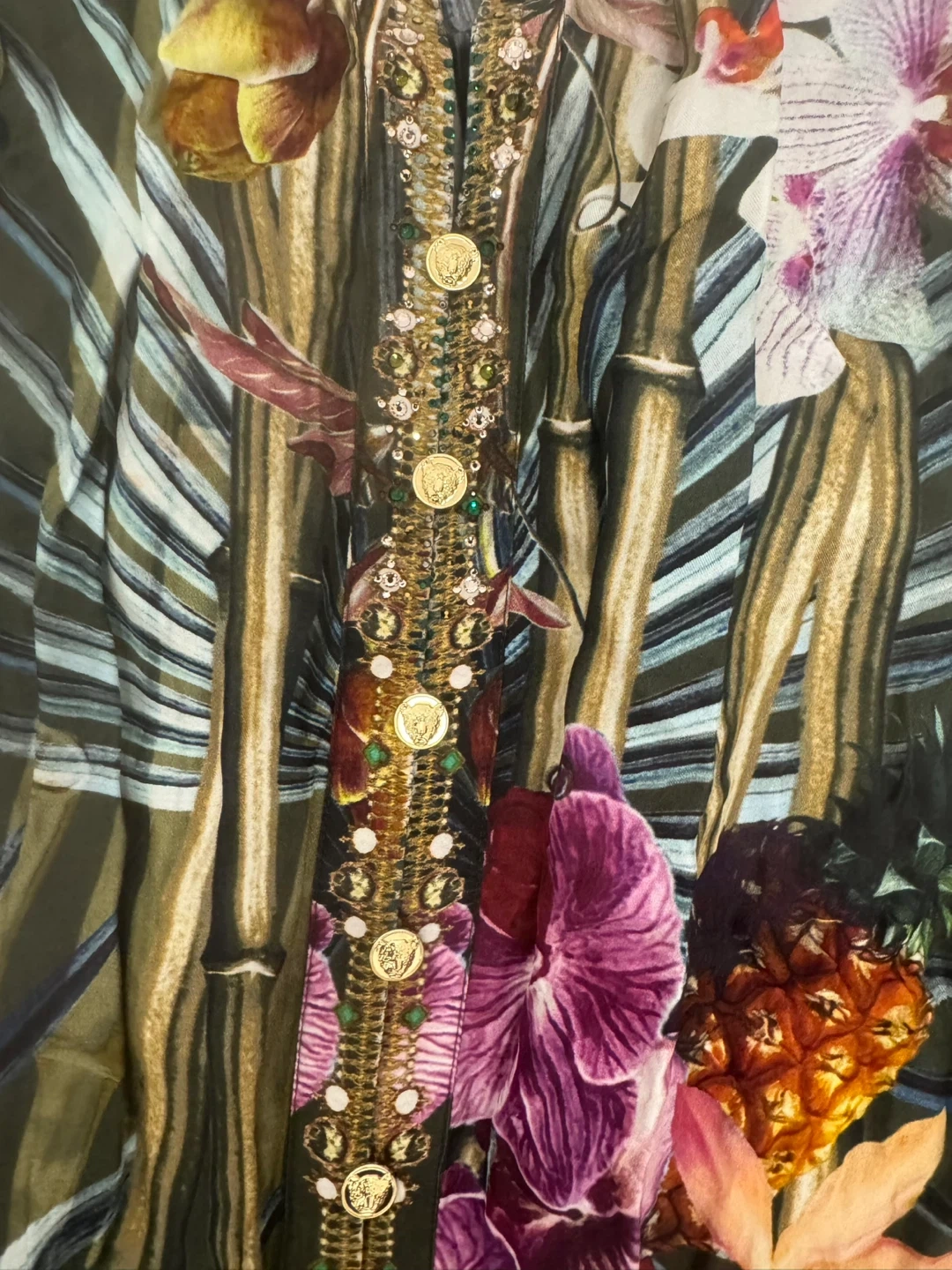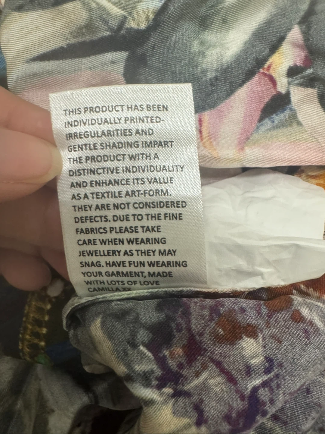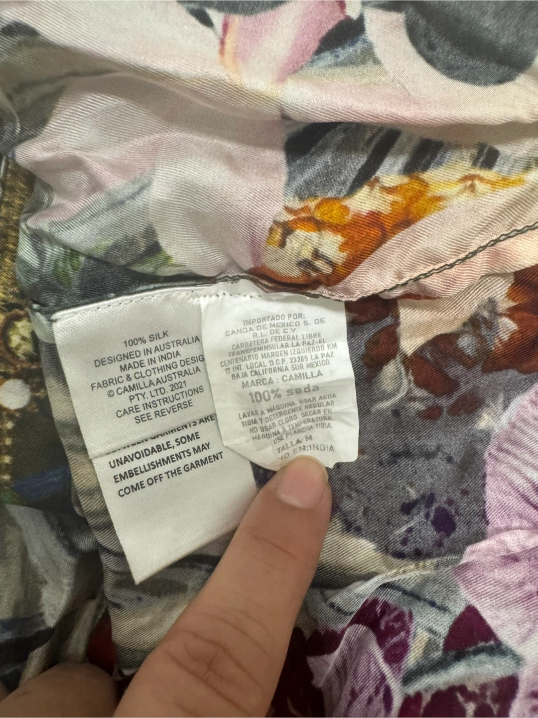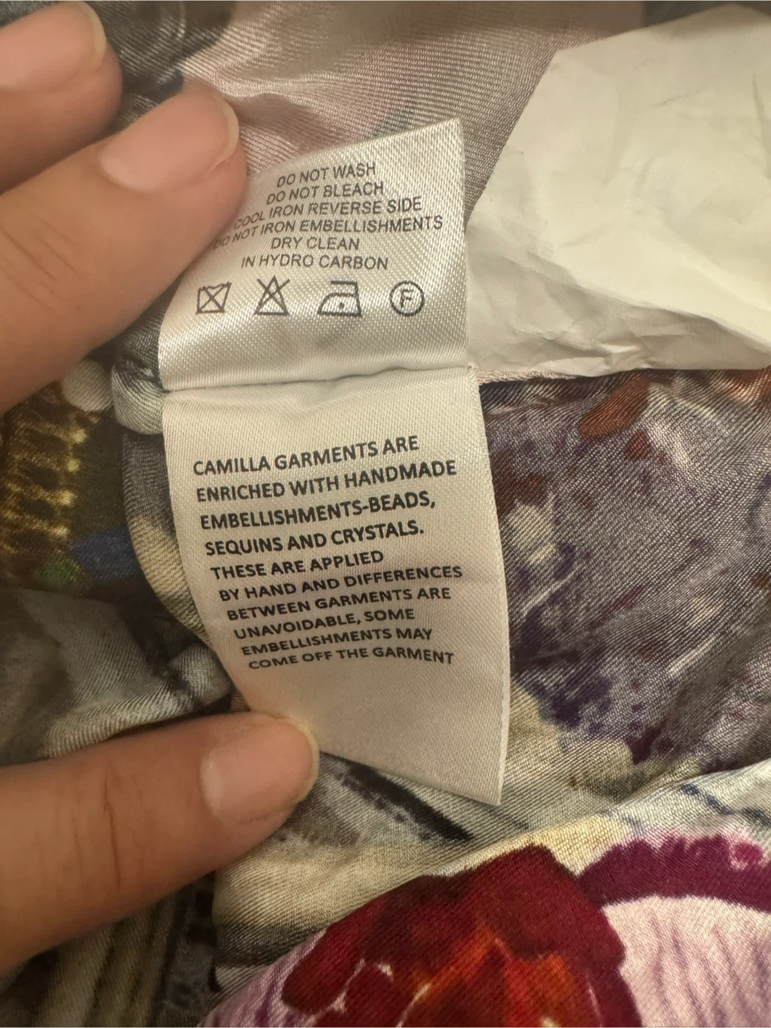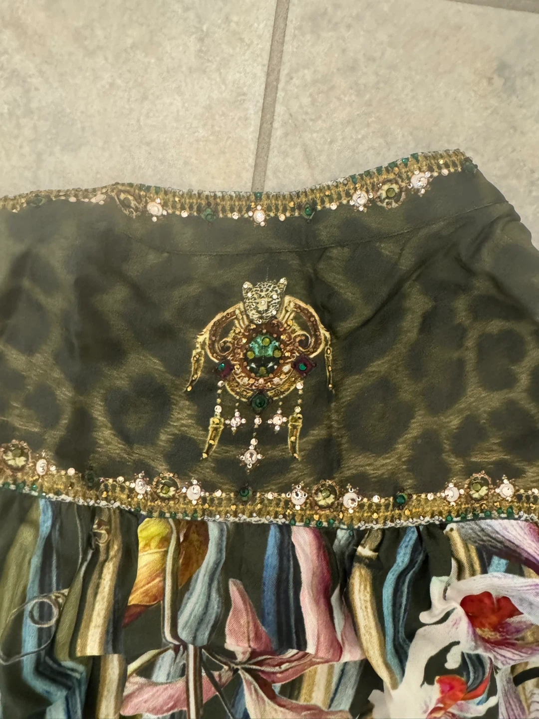 Beautiful Camilla dress with a unique print and detailed embellishments. It's in great condition and ready for a new home! 100% Silk Made in India Cash Pick up near Lawrence and Keele