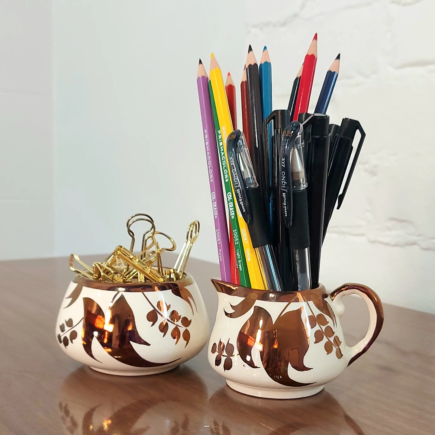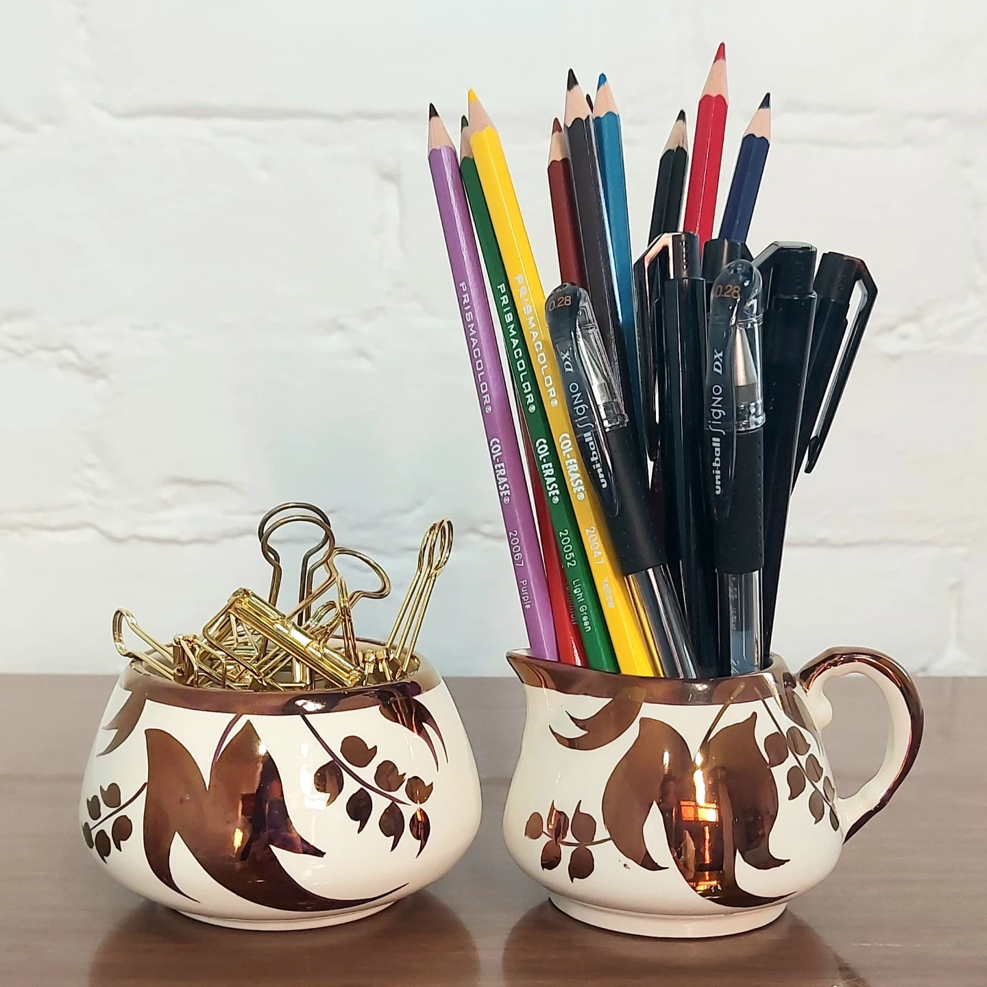 Retro small vases— an aesthetic touch to organizing your desk, workspace, or study area. Please note: pens, pencils, and clips are not included, and were used for demonstration purposes 🙂 From a pet free and smoke free home.