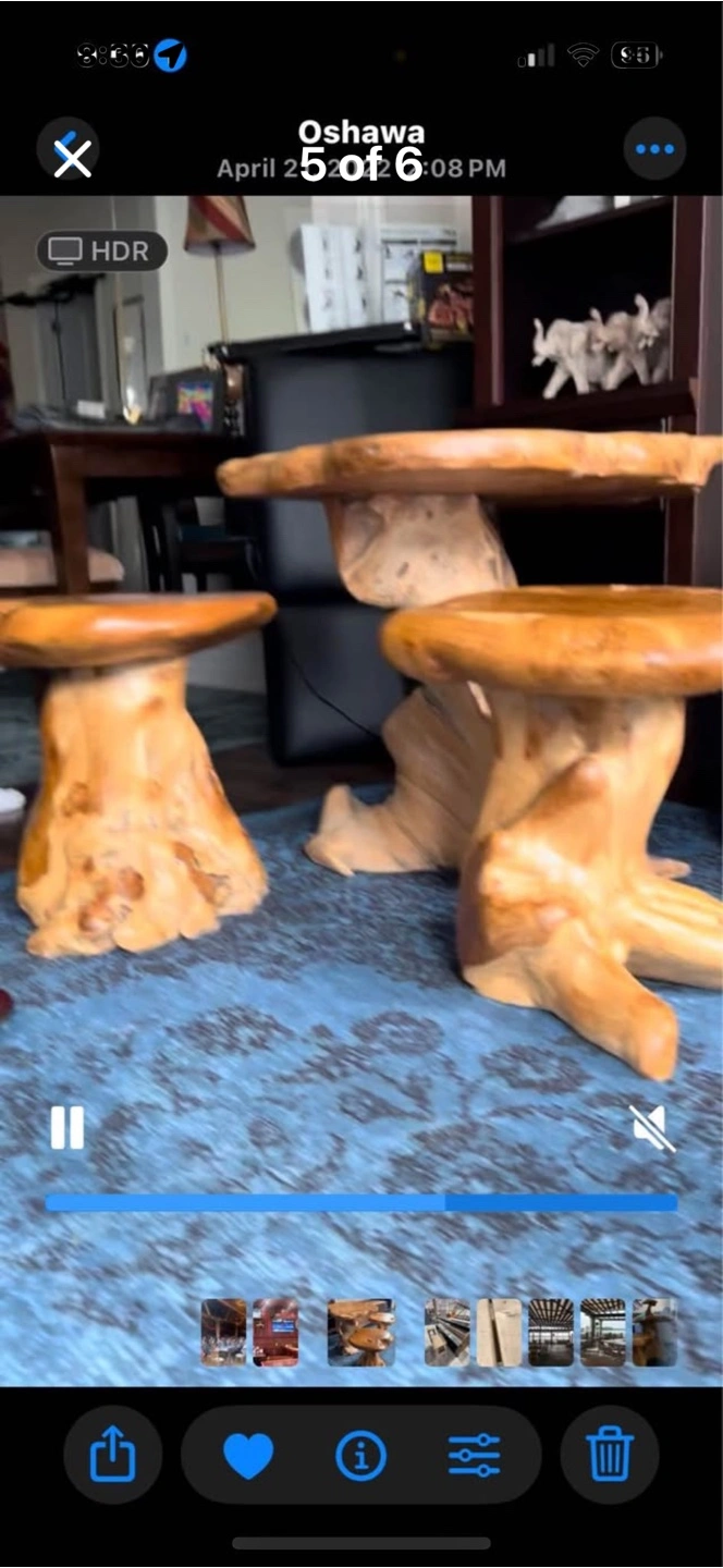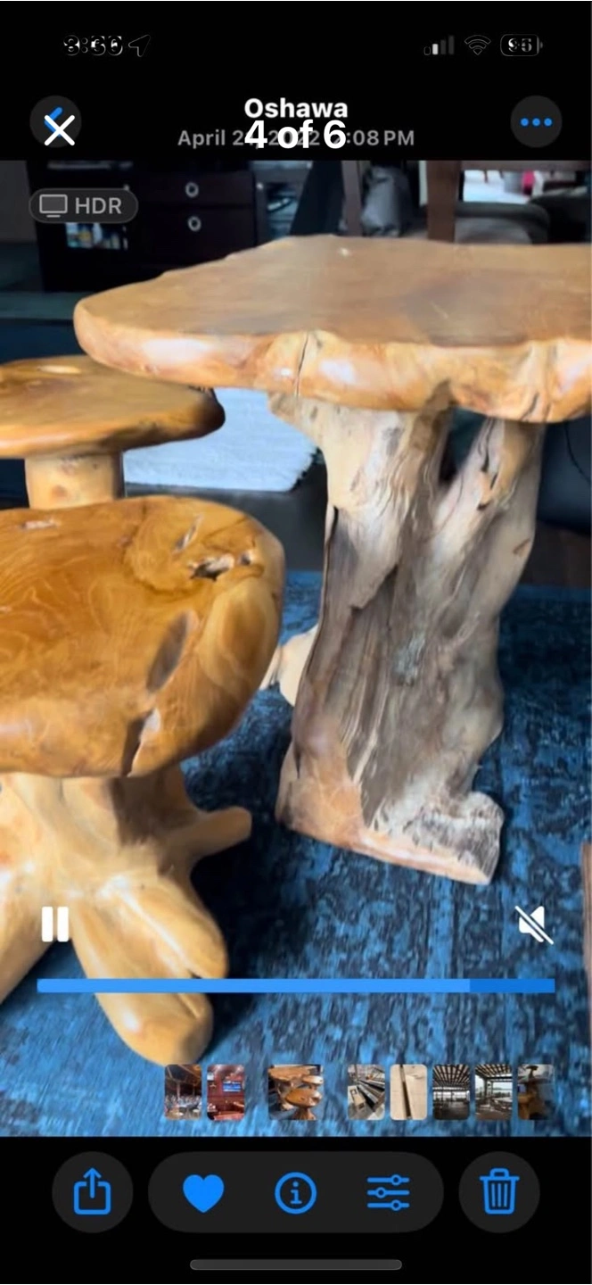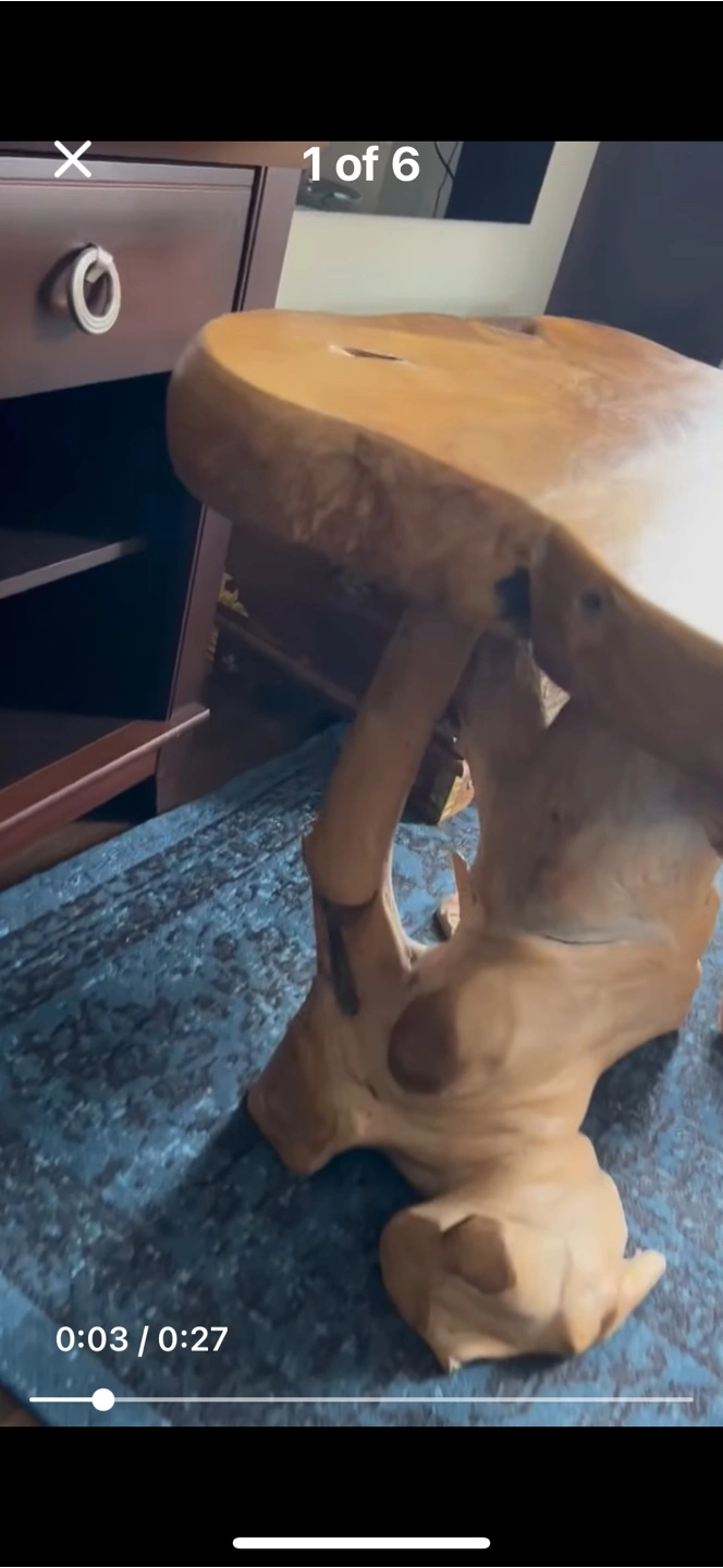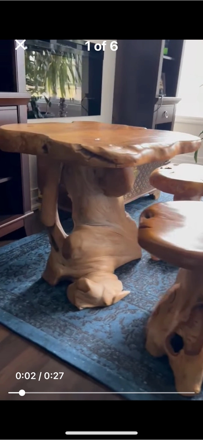 Selling a set of three unique wood stump side tables made for children. They have a natural, rustic look that would add a cool touch to any room. They're in great shape and ready for a new home! Imported items from Primitive Designs in Orono.