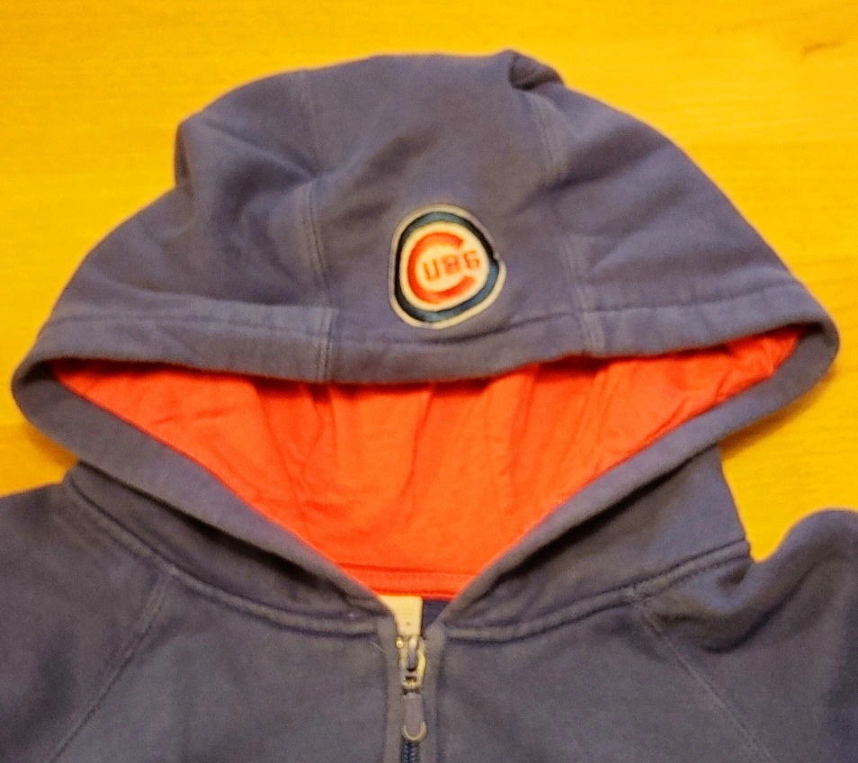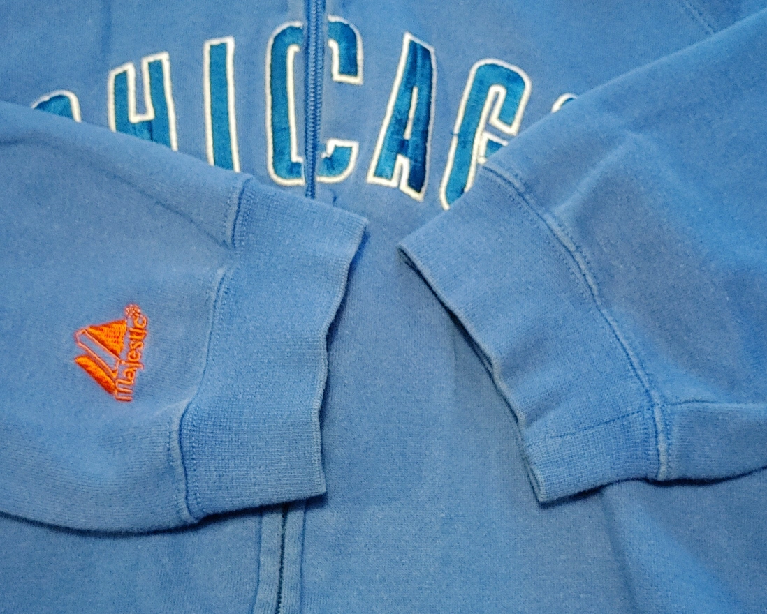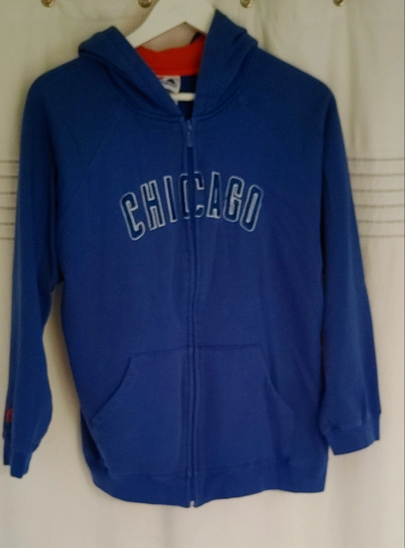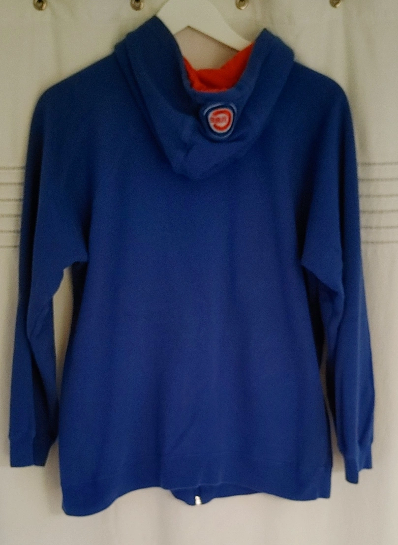 86Men's blue size small Majestic brand Chicago Cubs full zip hoodie. Zipper in perfect working order with front hand pockets. Cubs logo on back of the hood. No rips or stains. Smoke free home pick up Mt.Brydges cash only.