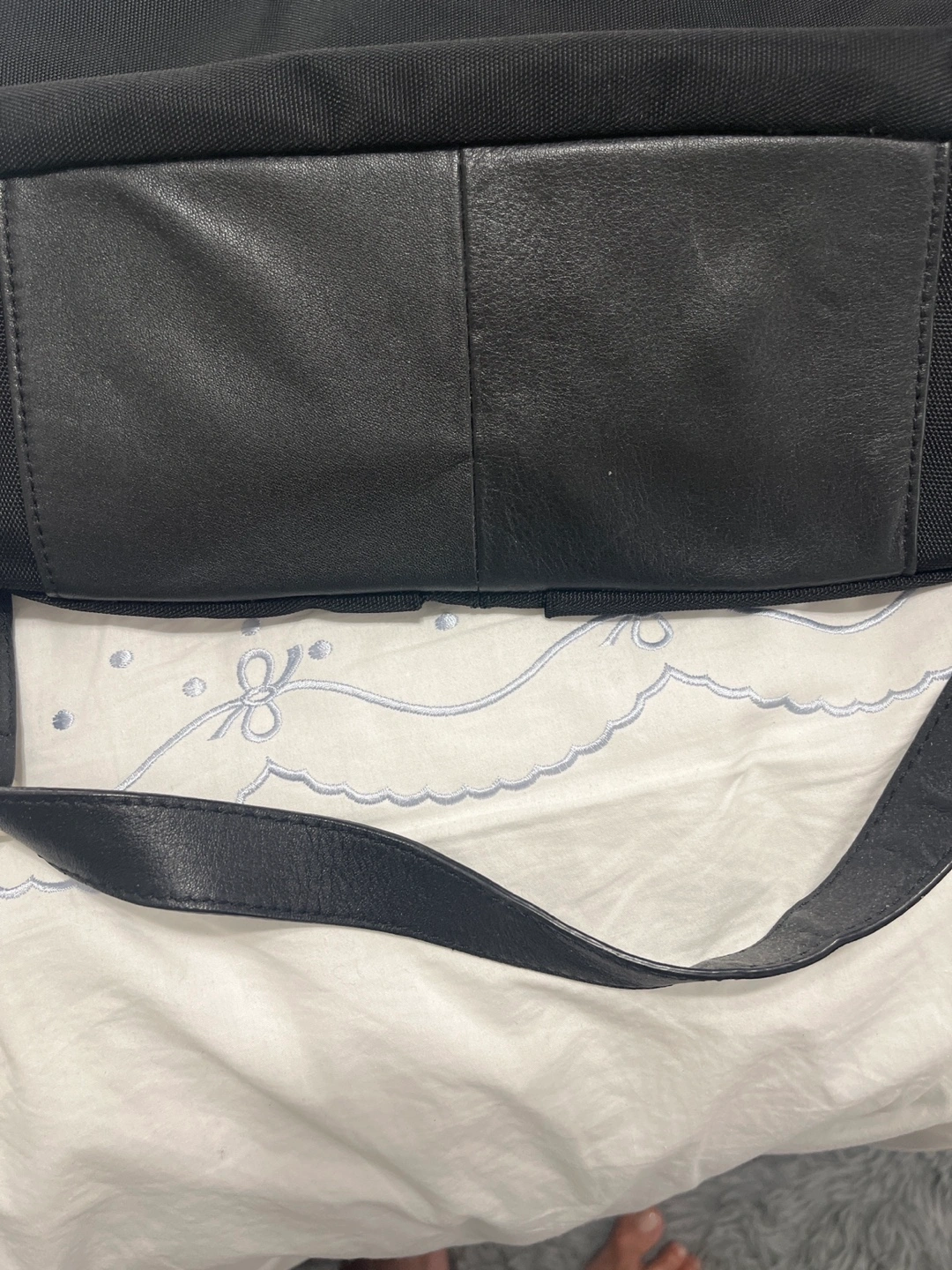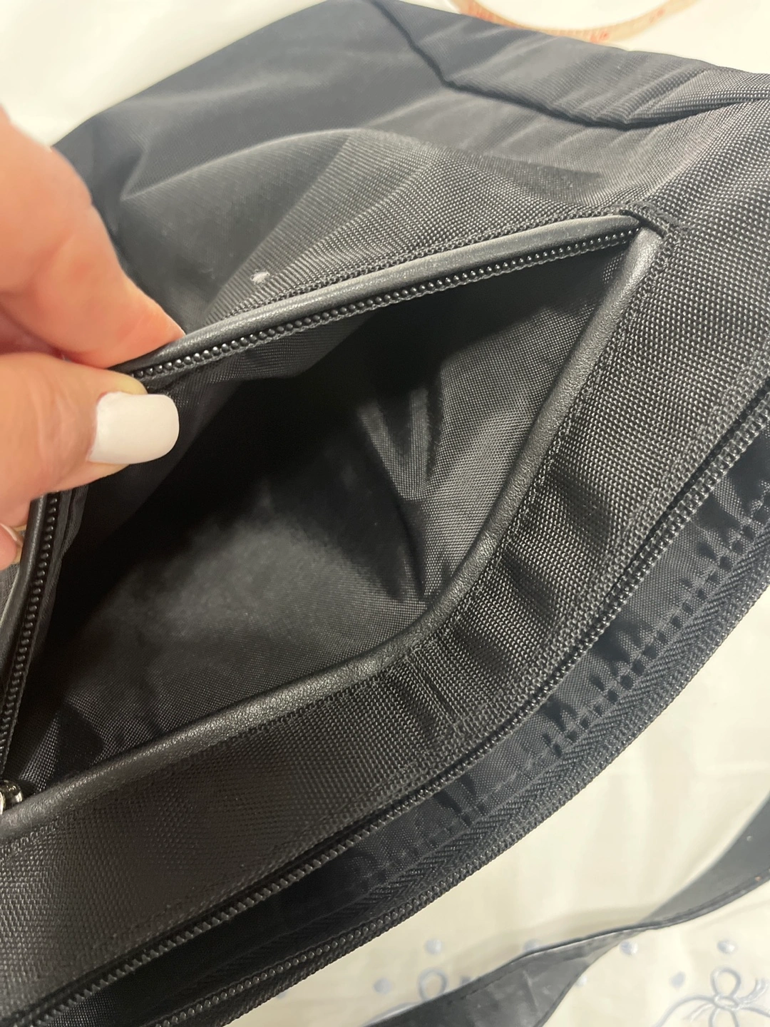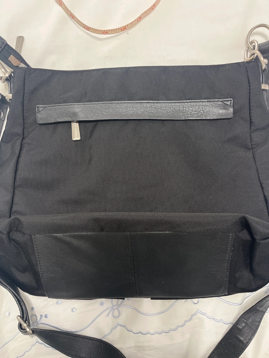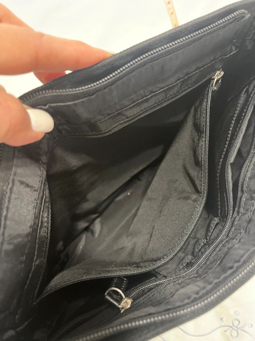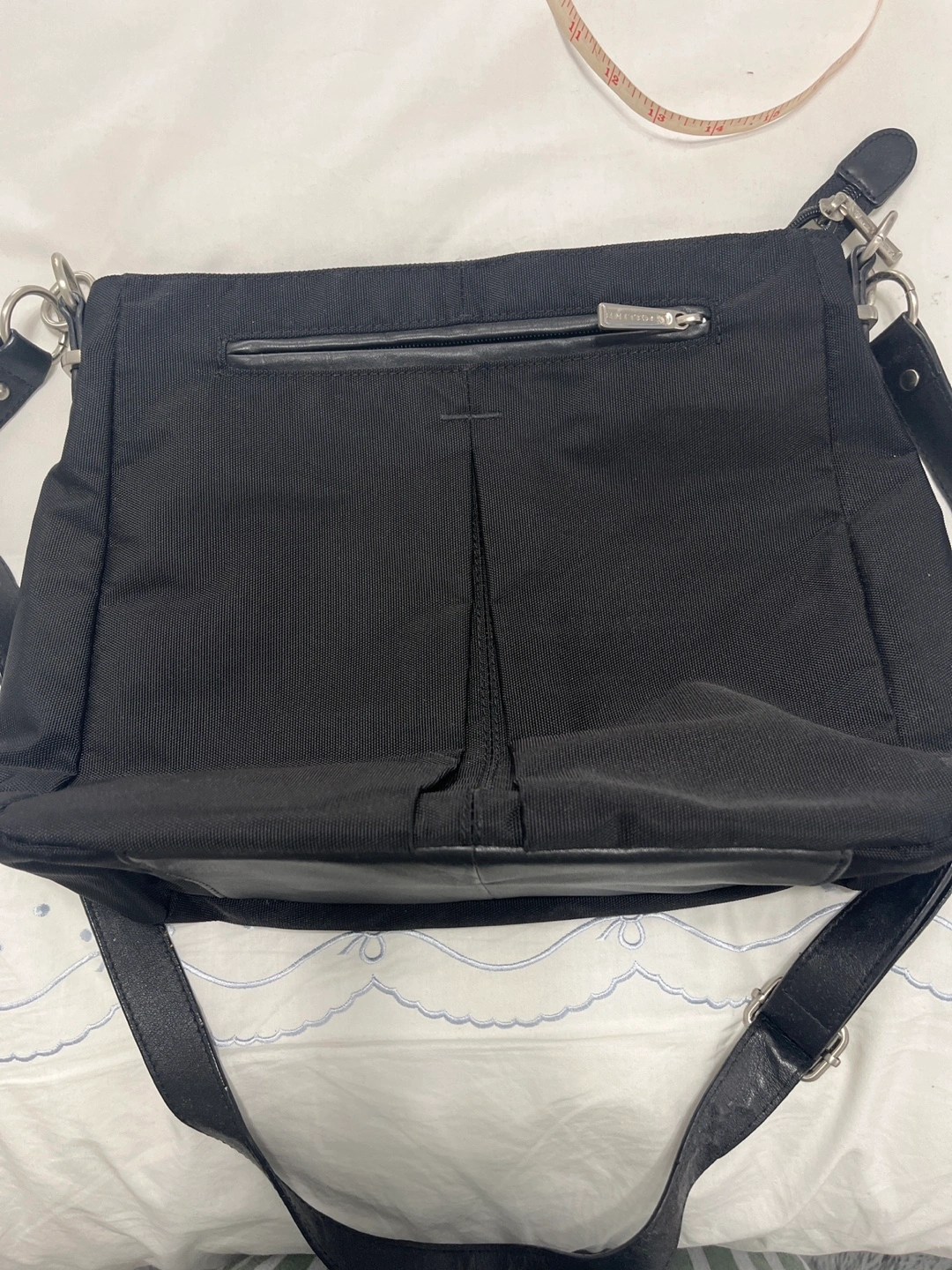 Selling a black shoulder bag from United. It features a zipper closure and an adjustable shoulder strap. The bag has multiple compartments for organization. It's in excellent condition and ready for a new home!