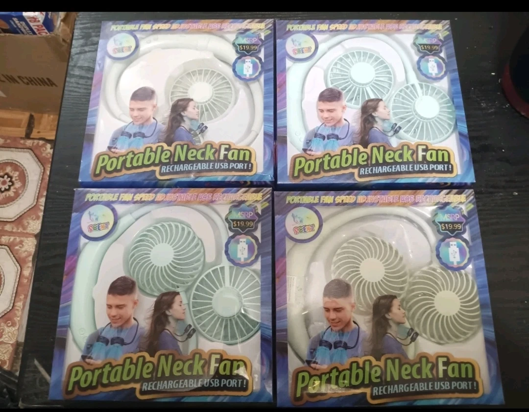 Portable neck fan! It's rechargeable via USB port, making it super convenient for on-the-go use great for staying cool