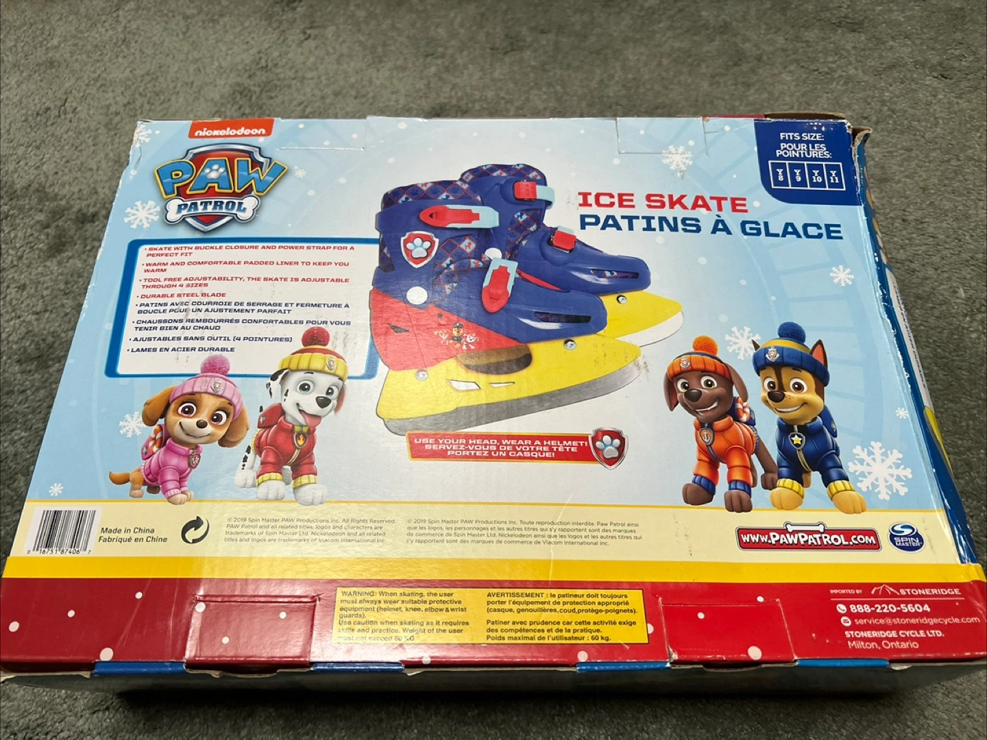 Get ready for some fun on the ice with these Paw Patrol ice skates! They are adjustable from size Y11 to Y8, so they can grow with your little one. The skates feature a comfortable padded liner and a secure buckle and power strap for a perfect fit. Comes with the original box!