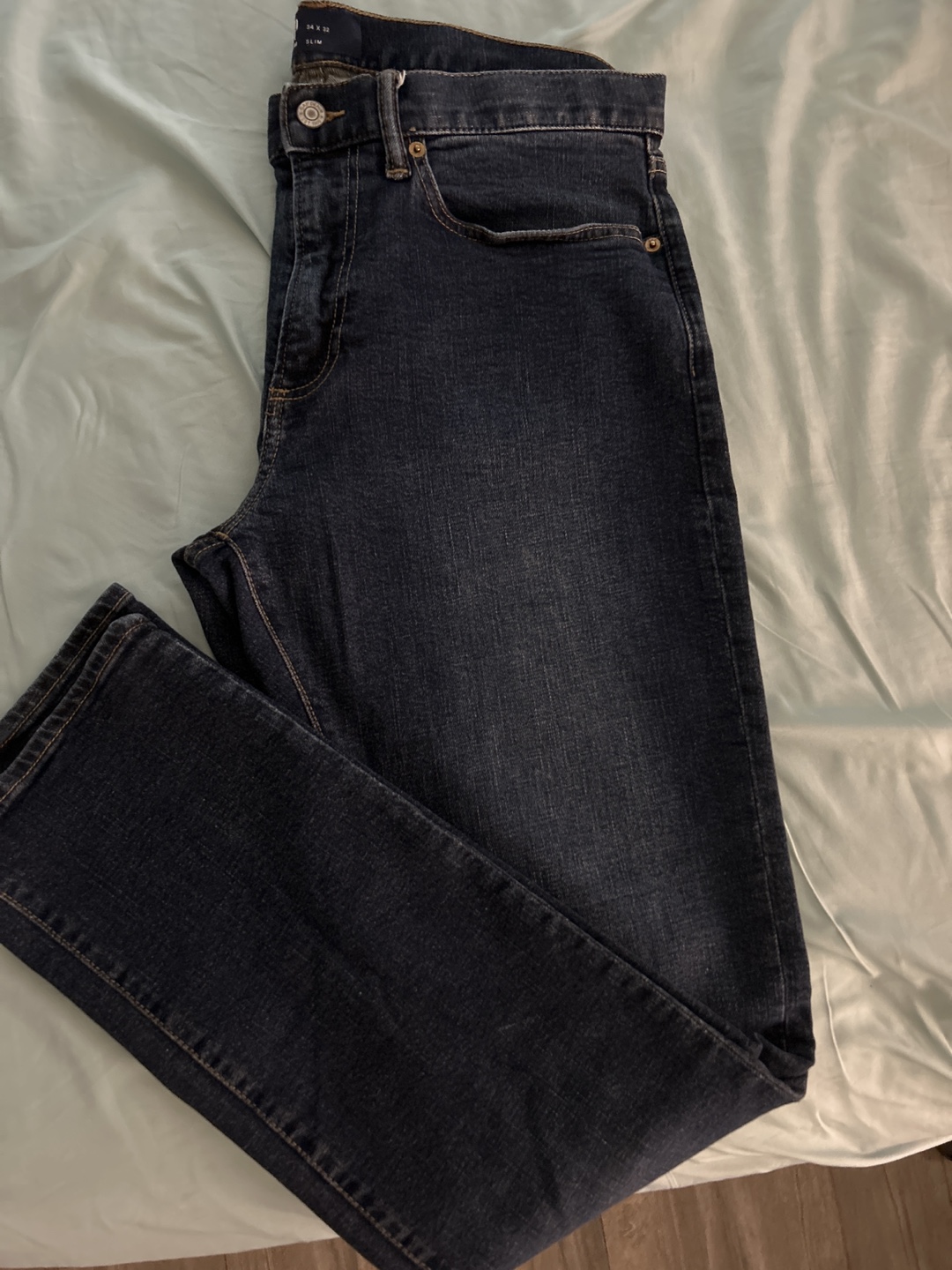 Selling a pair of Gap slim jeans in size 34x32. They are in brand new and ready for a new home!