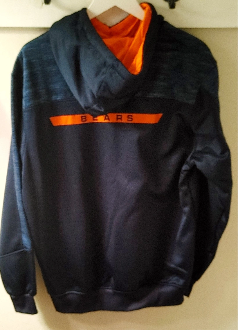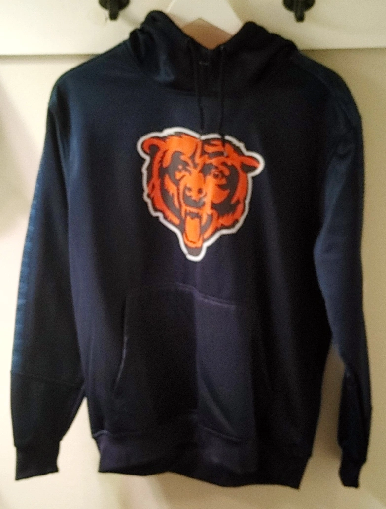 86Men's size large Chicago Bears pullover hoodie. Excellent condition and features the team's logo on the front and 'BEARS' lettering on the back. Front hand kangaroo pocket. No rips, stains or fraying. Smoke free home pick up Mt.Brydges cash only.