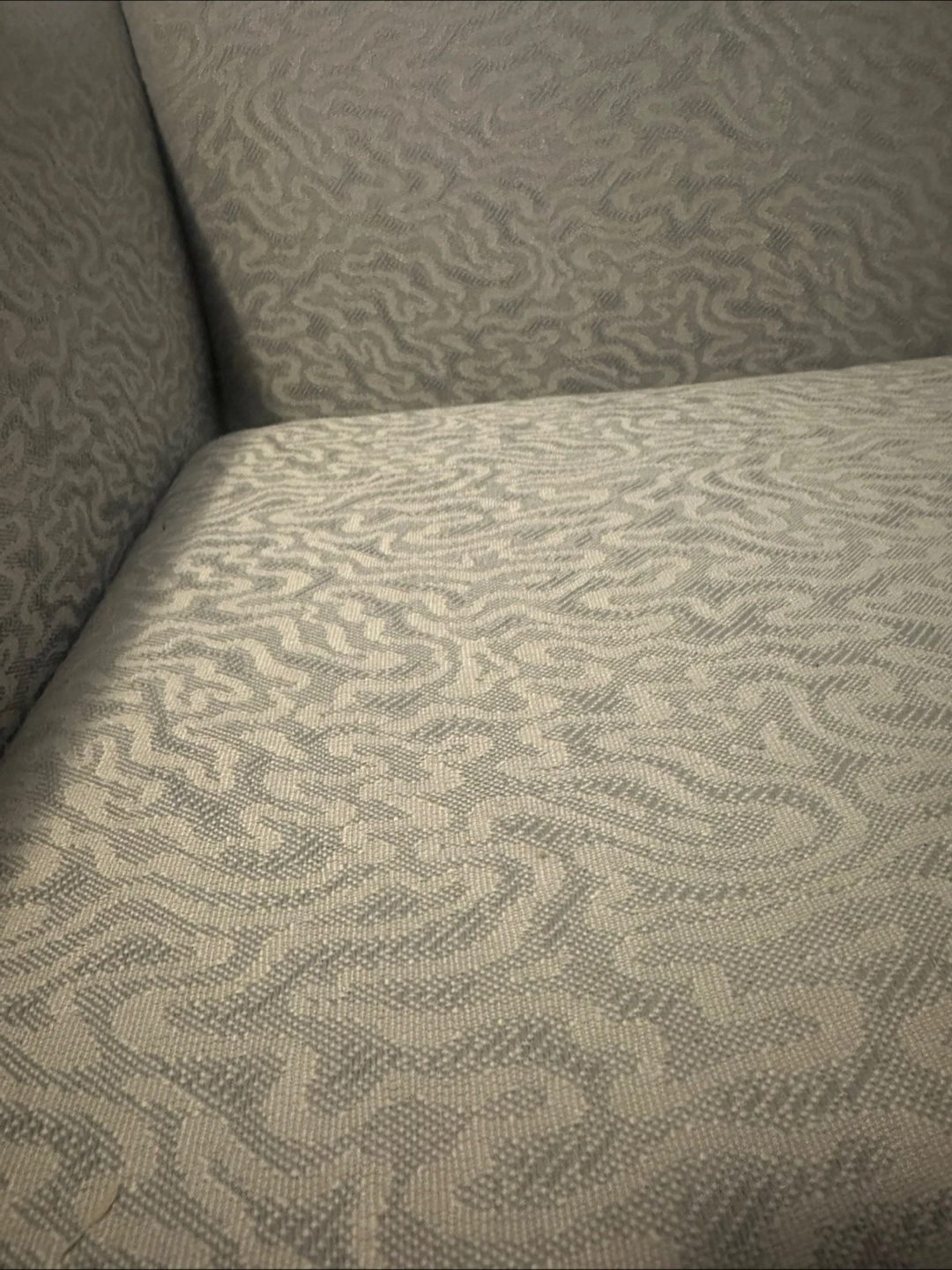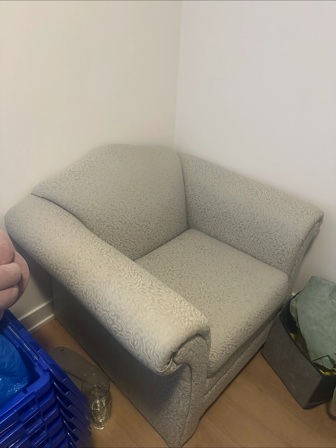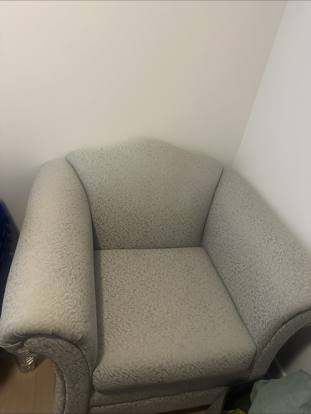 Selling a comfy armchair with a subtle patterned design. It's a great addition to any living space and offers a cozy spot to relax. The chair is in good condition and ready for a new home!