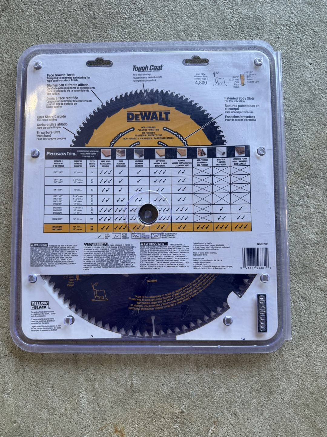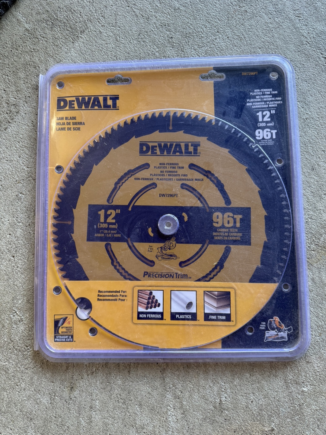Selling a brand new DeWalt 12-inch, 96-tooth precision trim saw blade! It's designed for non-ferrous metals, plastics, and fine trim work. Perfect for getting those clean, accurate cuts you need for your projects.