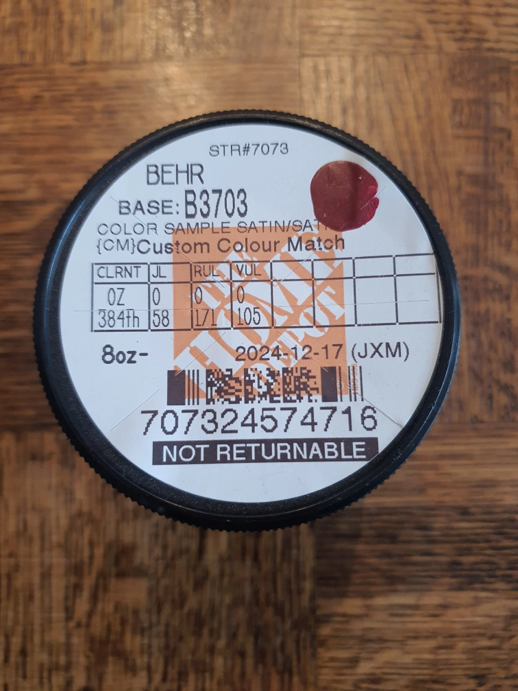 Selling a Behr Color Sample in a satin finish. It's an 8oz container. The color is a custom color match. I bought the wrong color.