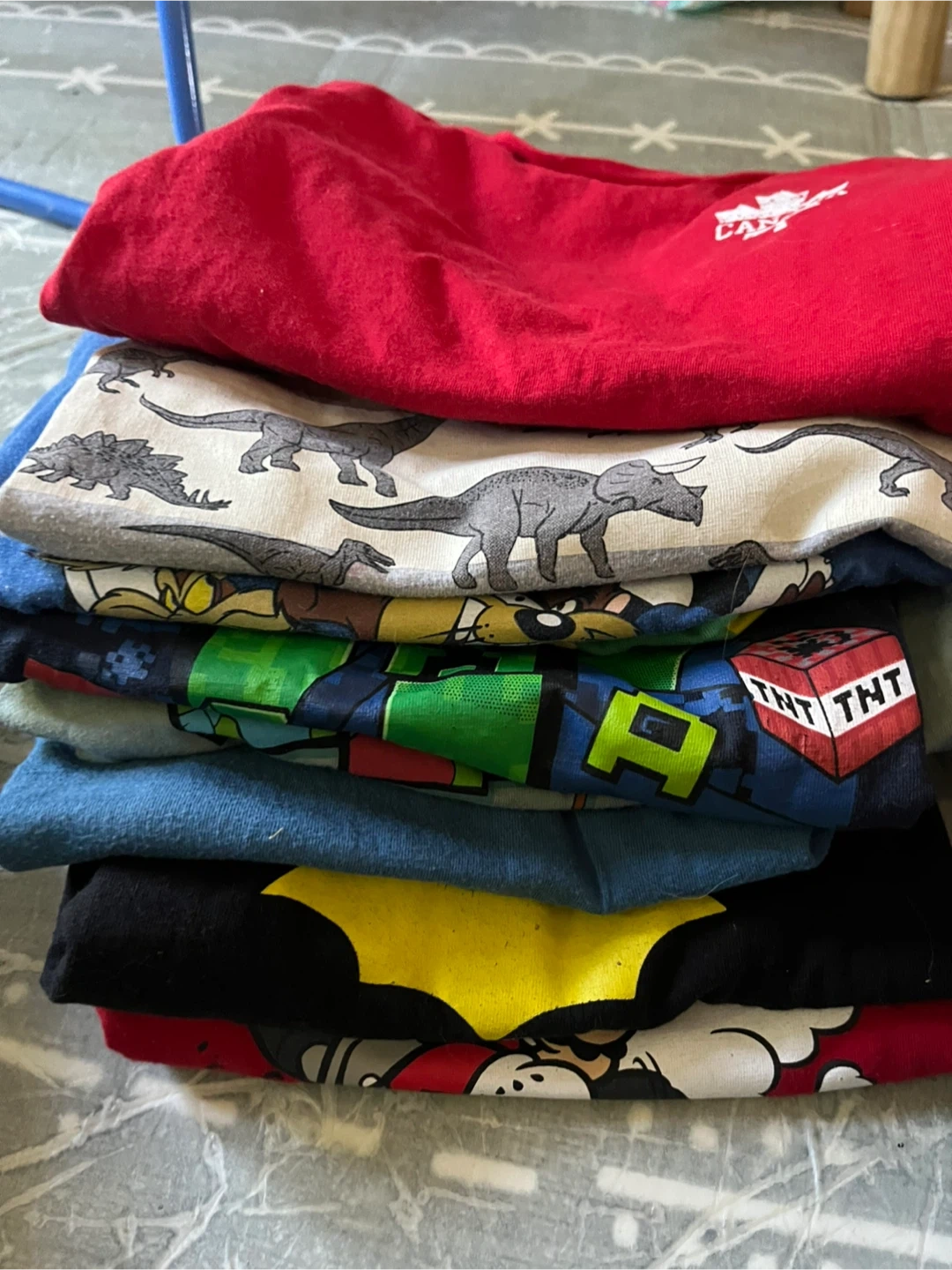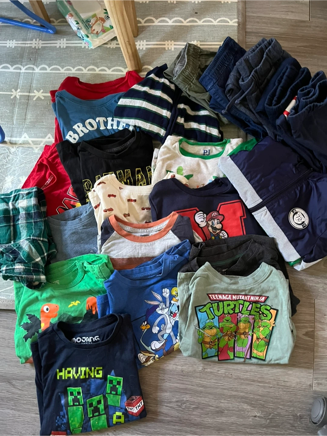 Boy clothes (size 4 and 5T). Mostly t-shirts and long sleeve shirts. There is some pants, a light jacket and a pyjama (short sleeve/pants). Brands: carters, Walmart, Costco Not interested in splitting the lot. Smoke free pet friendly home. Cash only If add is up it is available Pick up near stone road mall