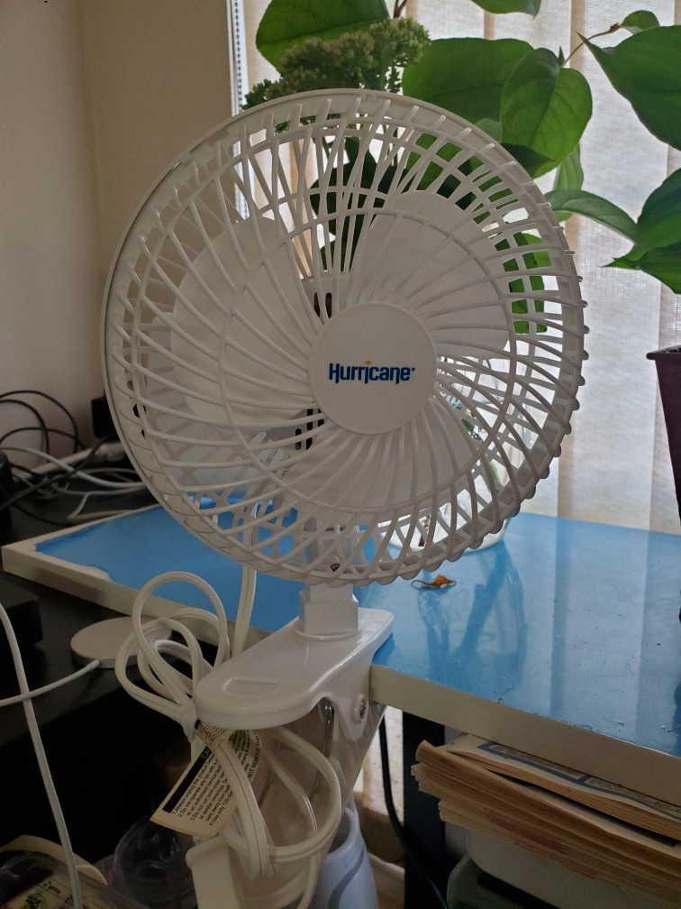 Here's a handy little Hurricane clip fan in white! It's perfect for keeping cool in small spaces, and the clip makes it easy to attach to a desk, shelf, or anywhere you need a bit of a breeze