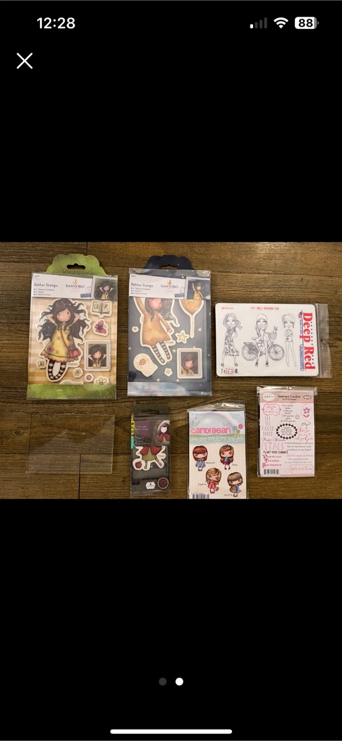 Mixed lot of rubber stamps and ink pads for crafting! There are several Santoro rubber stamp sets, along with other cute designs. You'll also get a variety of ink pads, including Color Box and Craft Ink Pad sets, with lots of colors to choose from. Perfect for scrapbooking, card making, and other paper crafts