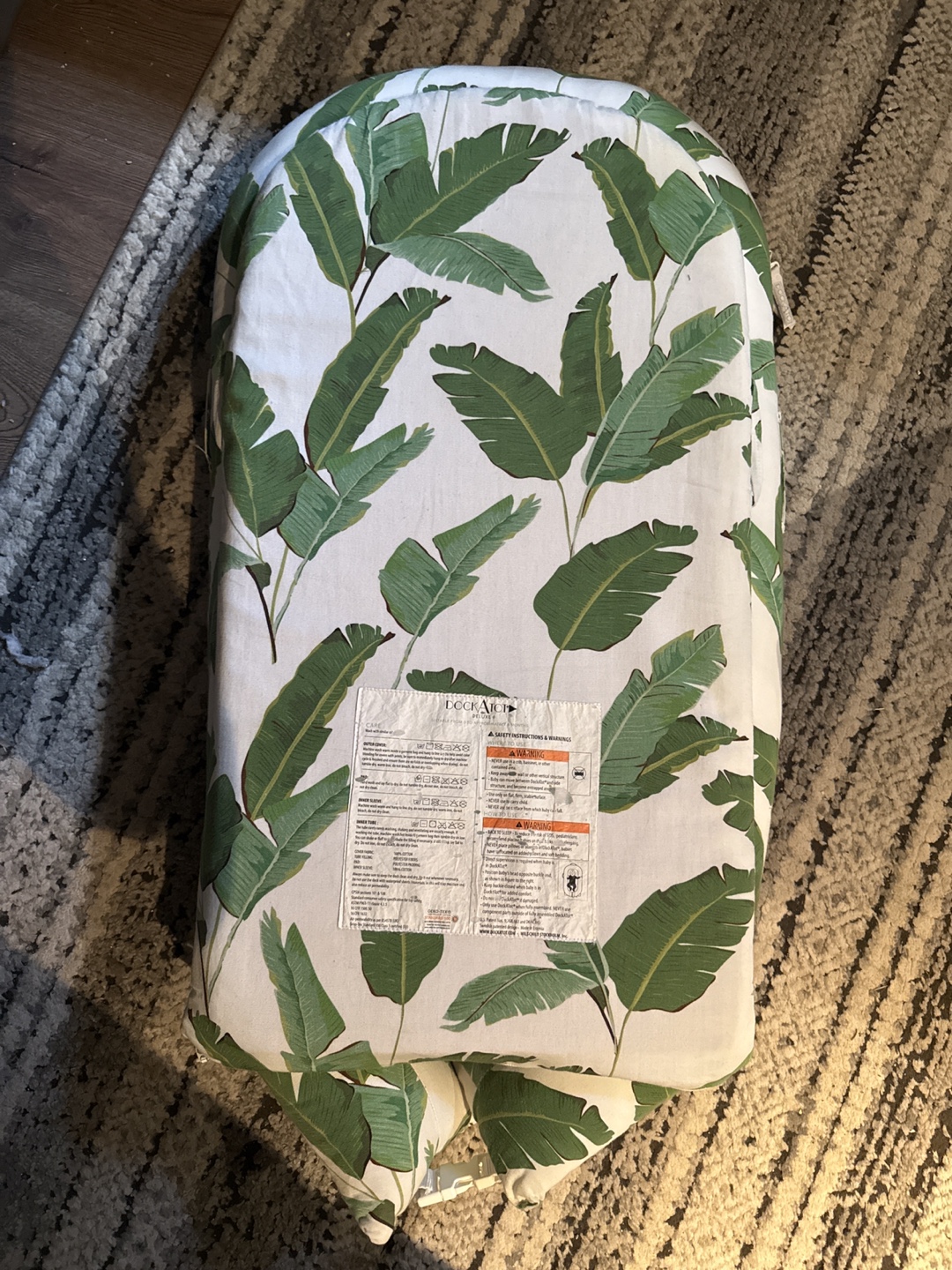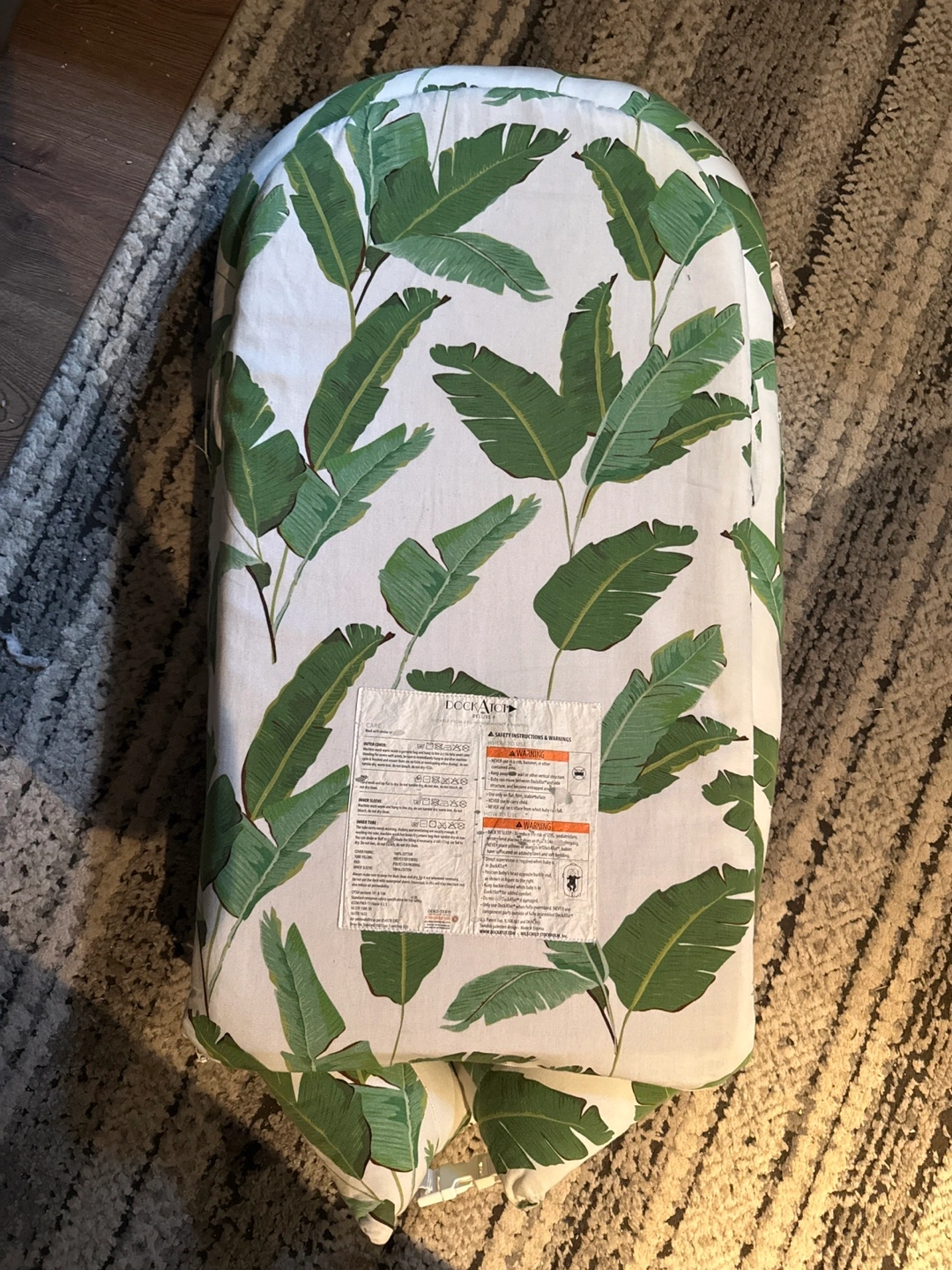 Selling a gently used DockATot Deluxe+ Dock in the Banana Palm pattern. This comfy dock is perfect for newborns up to 8 months old. It's in great condition and ready for a new little one!