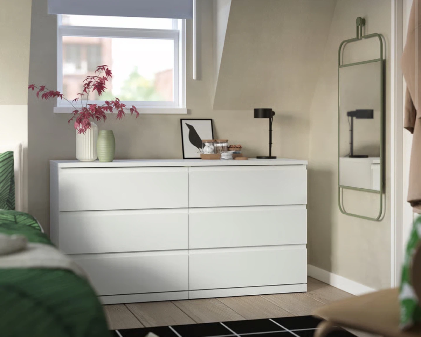 IKEA 6-drawer dresser, white/anchor/unlock function,