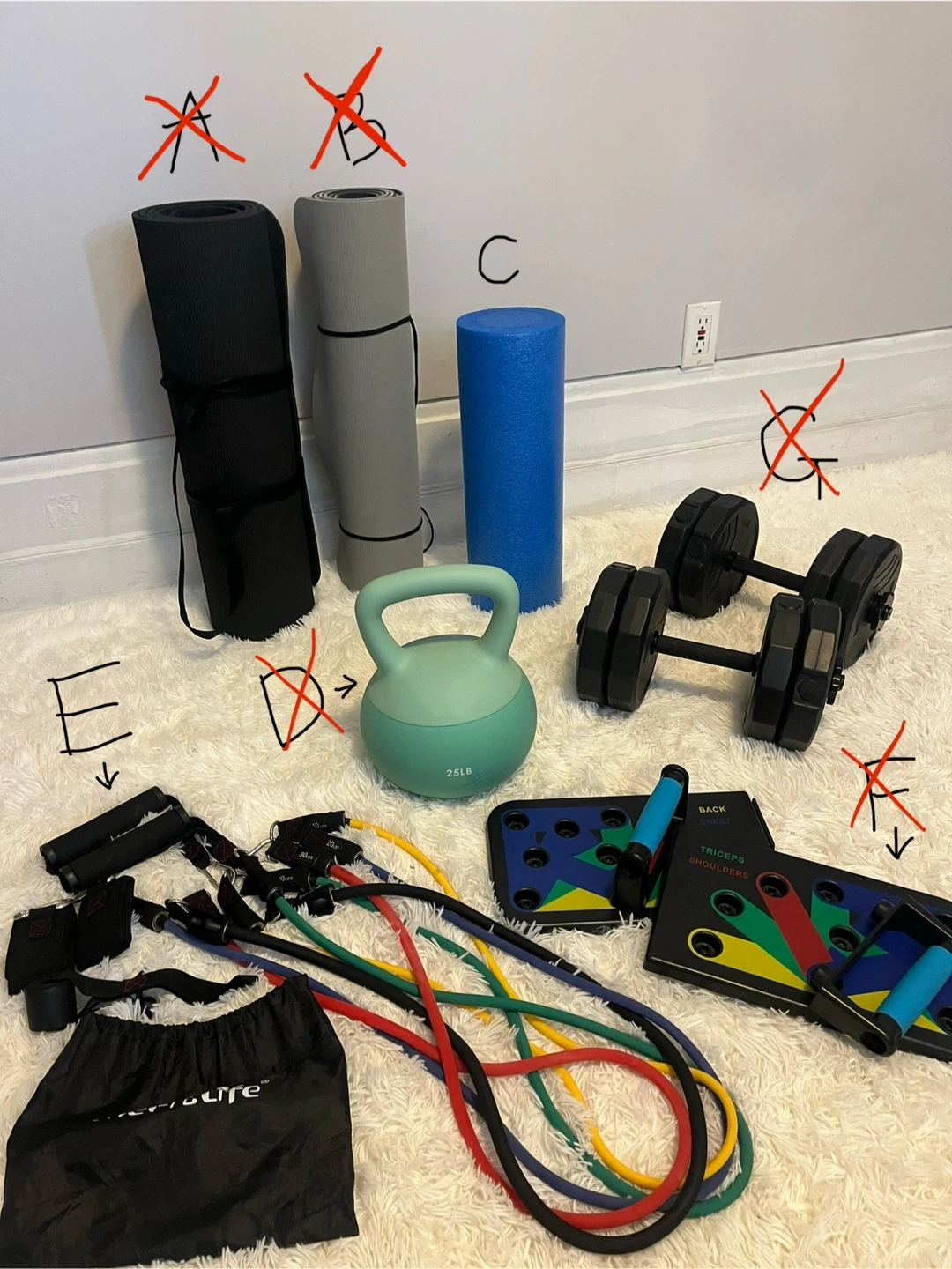A B C Foam roller - $2 D E Resistance band - $2 F G Everything is available to buy separately.