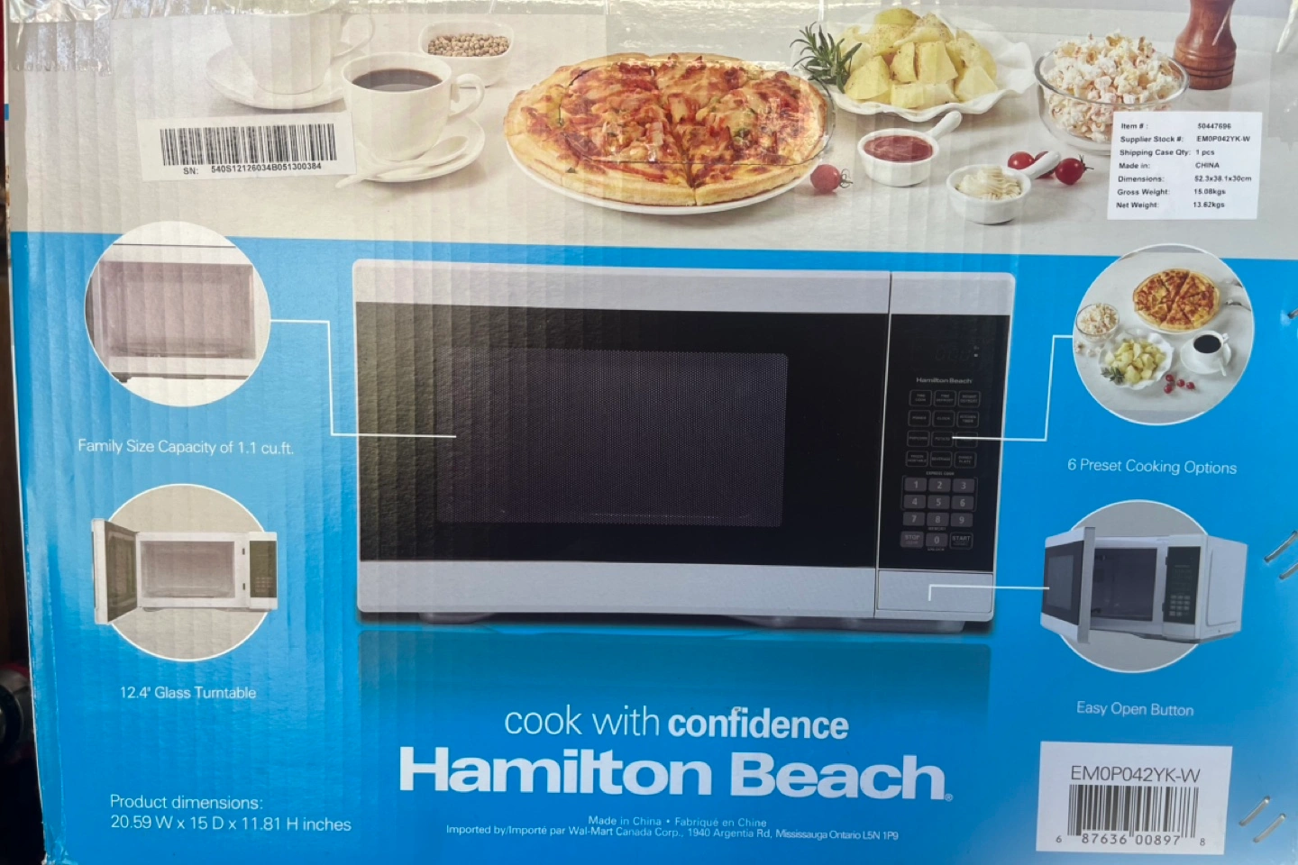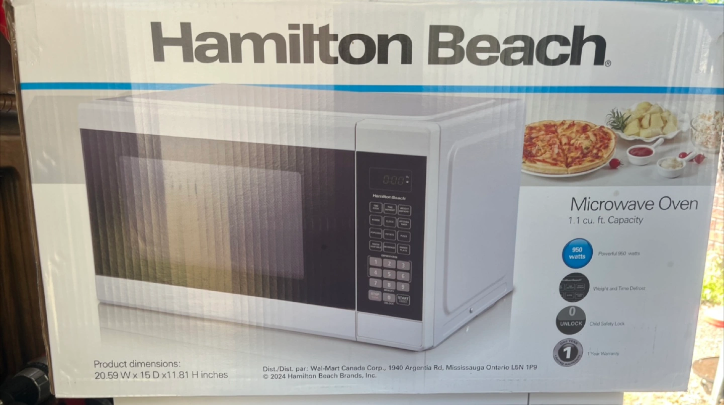 58Selling a Hamilton Beach microwave oven. It's in great condition and ready for a new home! It has a family size capacity of 1.1 cu ft and features 6 preset cooking options. The dimensions are 20.59" W x 15 D x 11.81" H.