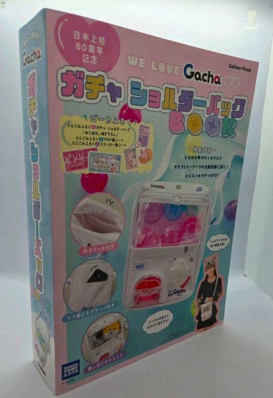 Brand new, sealed, Takara Tomy - We Love Gacha! Gacha Shoulder/ Crossbody Bag in White. To celebrate the 60th anniversary of capsule toys in Japan, Takara Tomy Arts released a unique shoulder bag that looks just like a capsule toy machine!