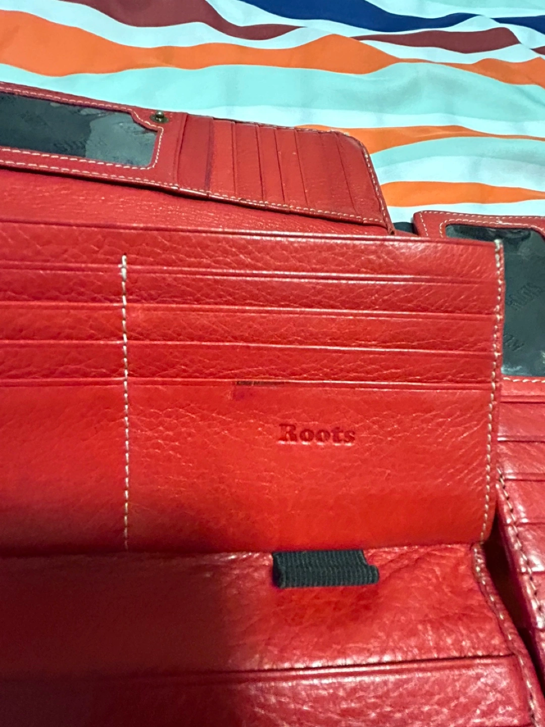 Selling a Roots red leather wallet. It has lots of space for cards and cash. The wallet is in good condition with some signs of wear. Perfect for everyday use!