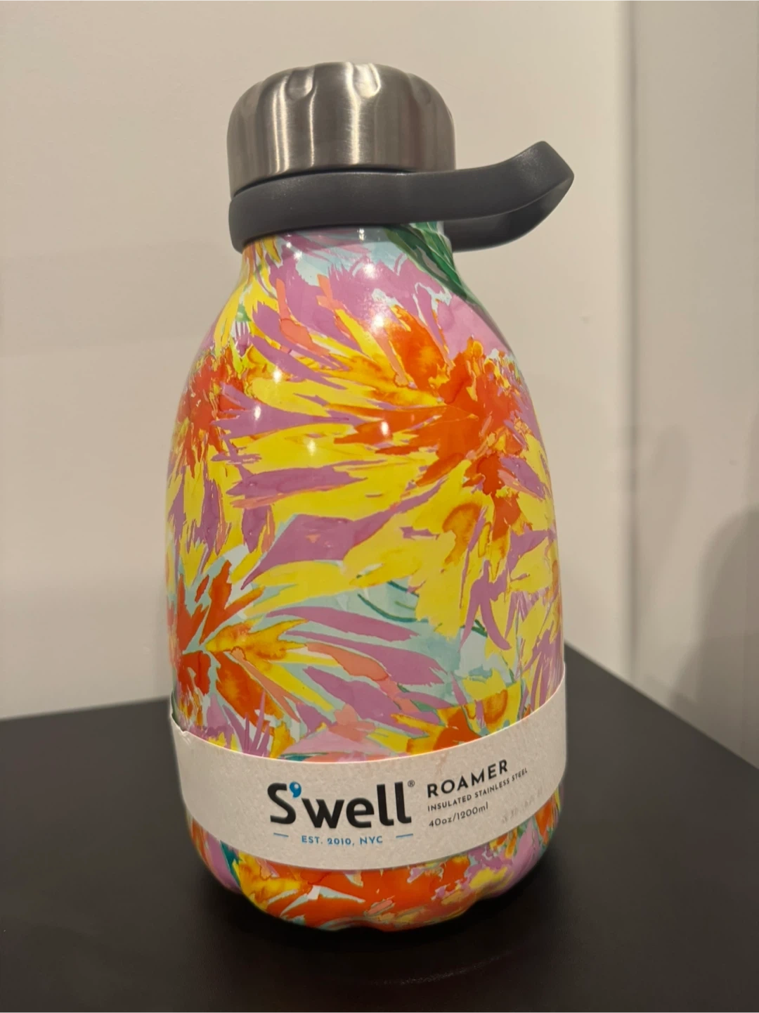 I’m selling this S’well Roamer Water Bottle with an abstract flower pattern. Insulated stainless steel keeps drinks cold for 24 hours and hot for 12.