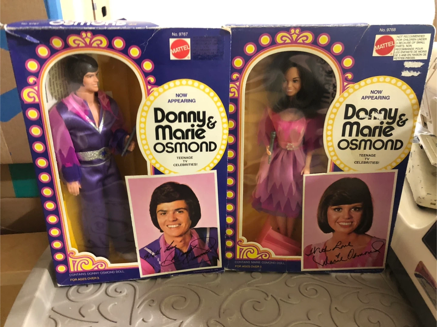 Selling a set of vintage Donny & Marie Osmond dolls from Mattel, dated 1976! These dolls are a real blast from the past. Each doll comes in its original box, ready to bring back some nostalgic memories or add to your collection