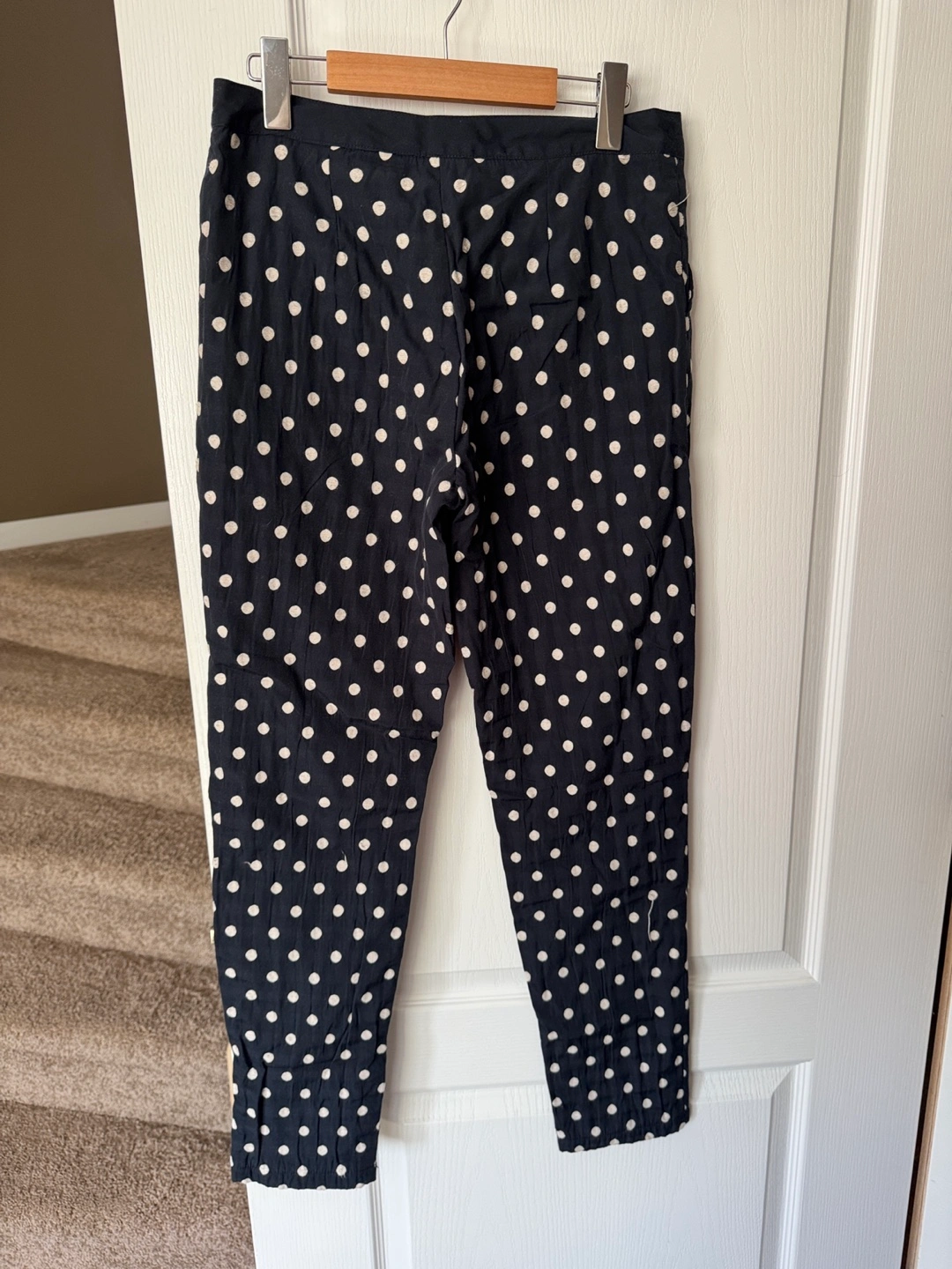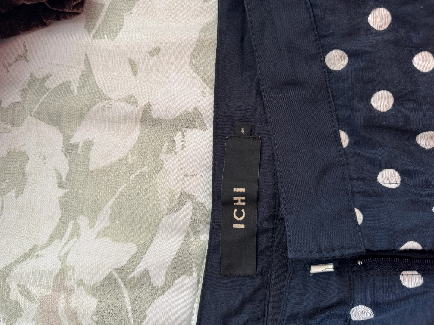 Cute ICHI pants with a fun polka dot pattern! They are a size 36 and made of 70% cotton and 30% polyester. Perfect for adding a bit of flair to your wardrobe